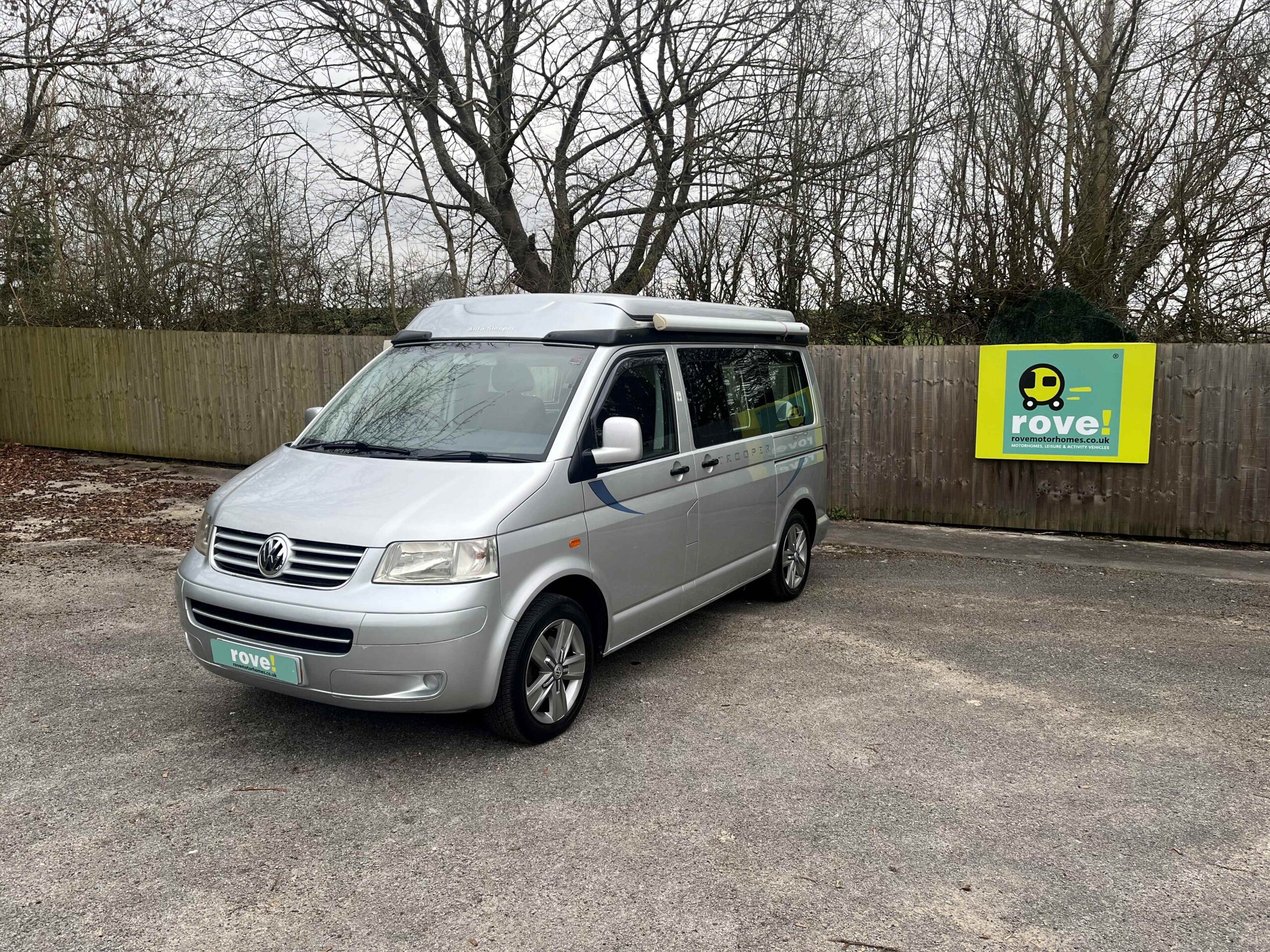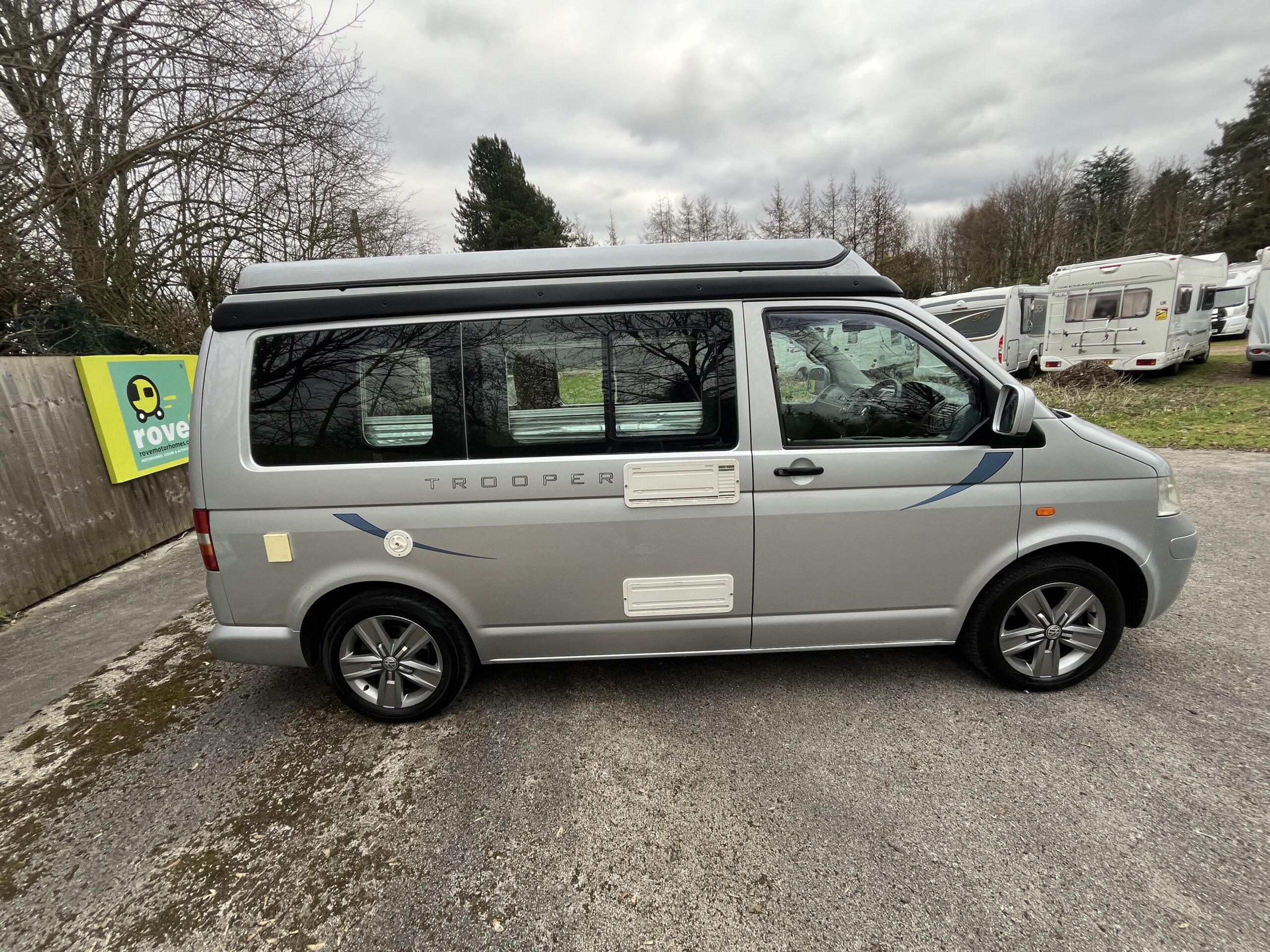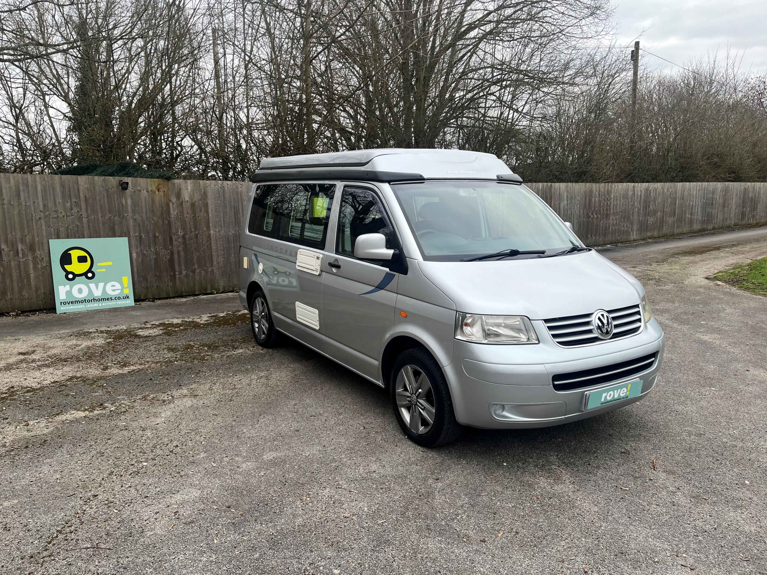 Rove Motorhomes Mansfield are pleased to offer this 2005 Autosleeper Trooper for sale, based on the 1.9l 5 speed manual VW engine and has done 89560 miles. This 4 berth 4 seat belt camper van van is just 4.99m. This metallic silver model low line Auto sleeper Trooper has the benefit of being driven as a car when the roof is down but, when raised, gives all the space you need and with the roof raising vertically rather than at an angle the space is across the whole living area.