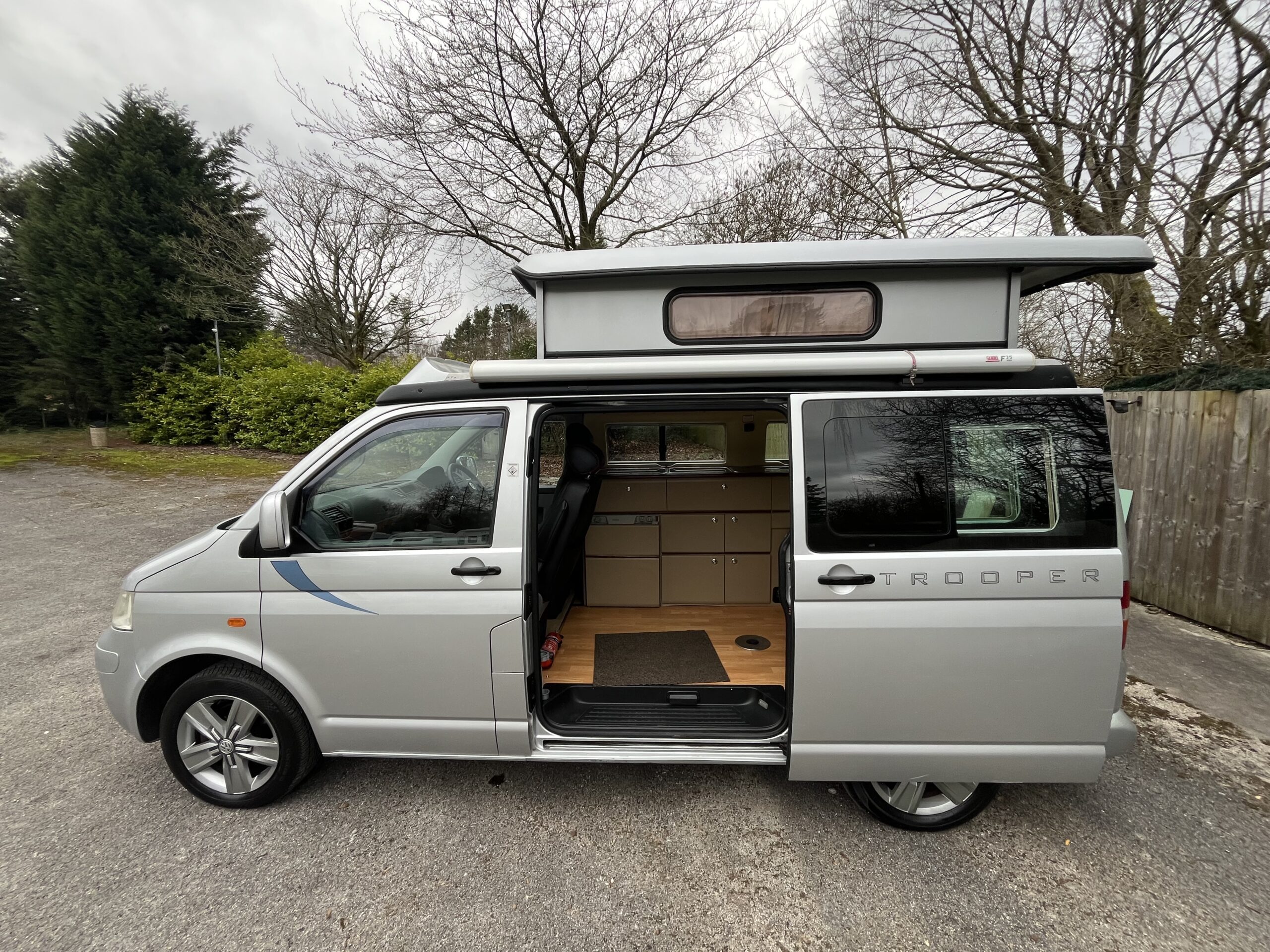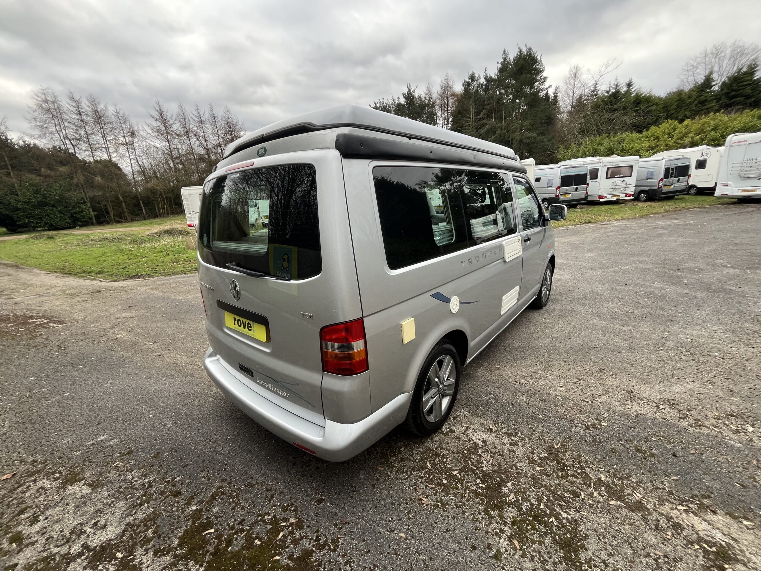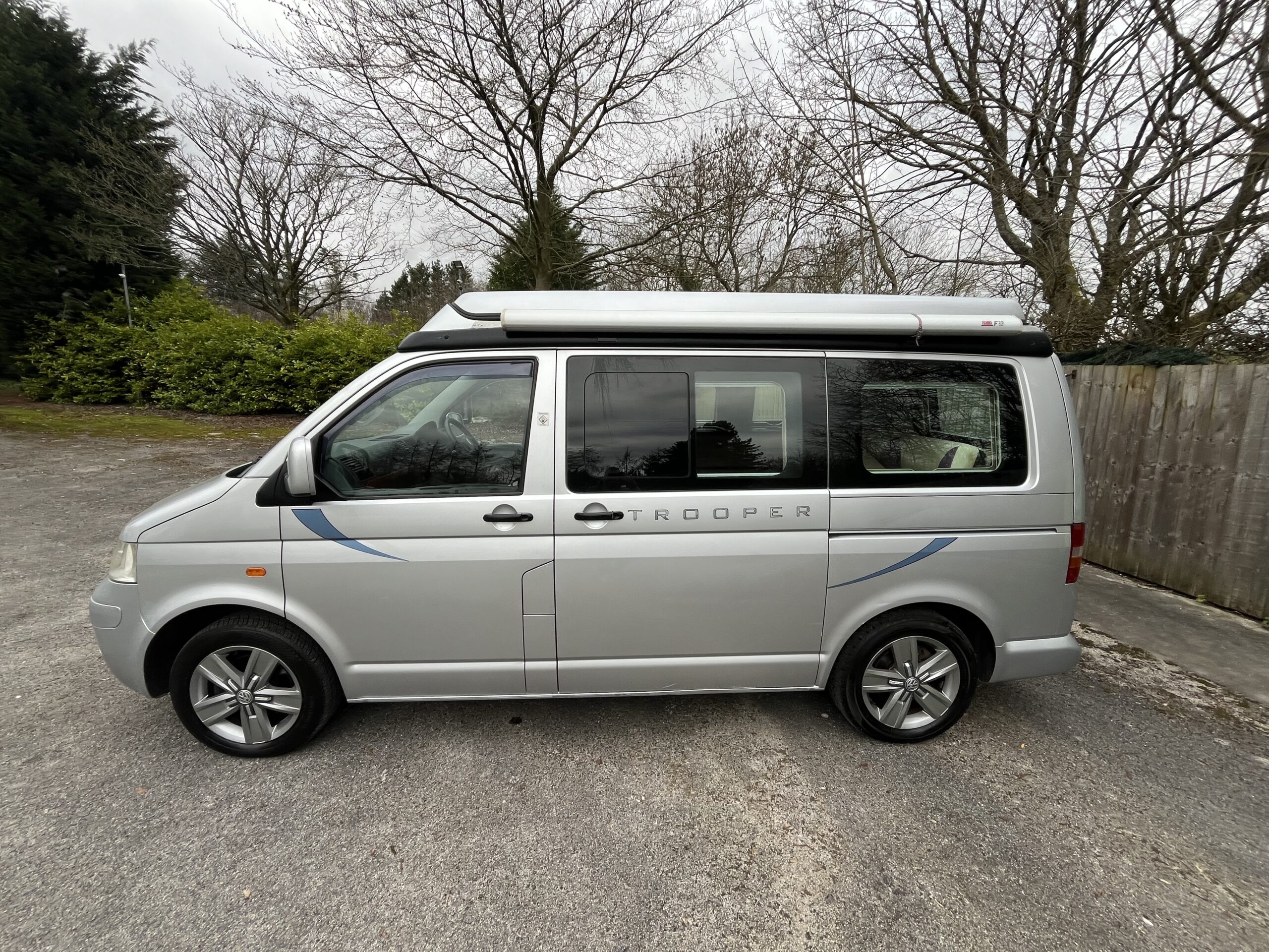 Rove Motorhomes Mansfield are pleased to offer this 2005 Autosleeper Trooper for sale, based on the 1.9l 5 speed manual VW engine and has done 89560 miles. This 4 berth 4 seat belt camper van van is just 4.99m. This metallic silver model low line Auto sleeper Trooper has the benefit of being driven as a car when the roof is down but, when raised, gives all the space you need and with the roof raising vertically rather than at an angle the space is across the whole living area.
