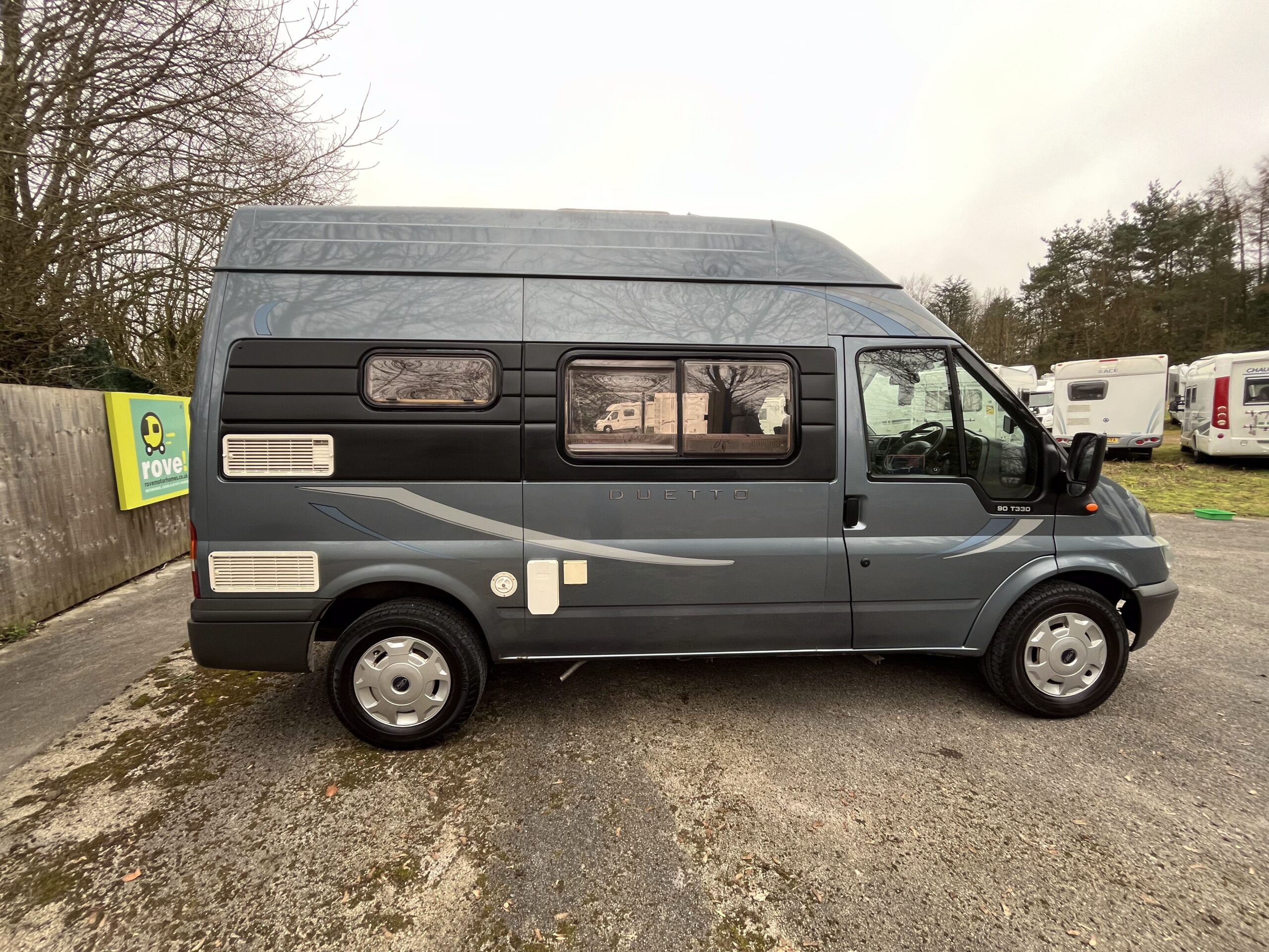 Rove Motorhomes are pleased to offer this 2005 Auto sleeper Duetto for sale, this 2 berth 3 seatbelt campervan is based on the 2.4l manual 5 speed gearbox and has covered 55,402 miles. The weight is 3300kg so can be driven on a standard car license and the overall length is 5.42m.