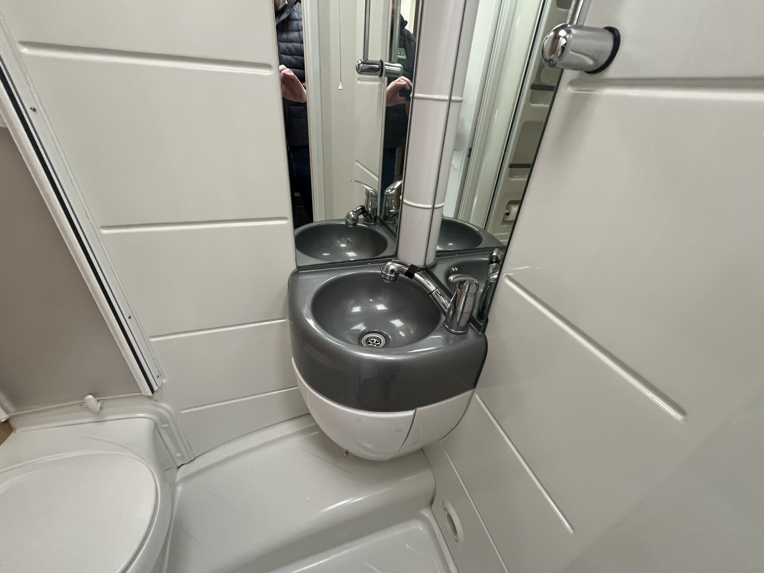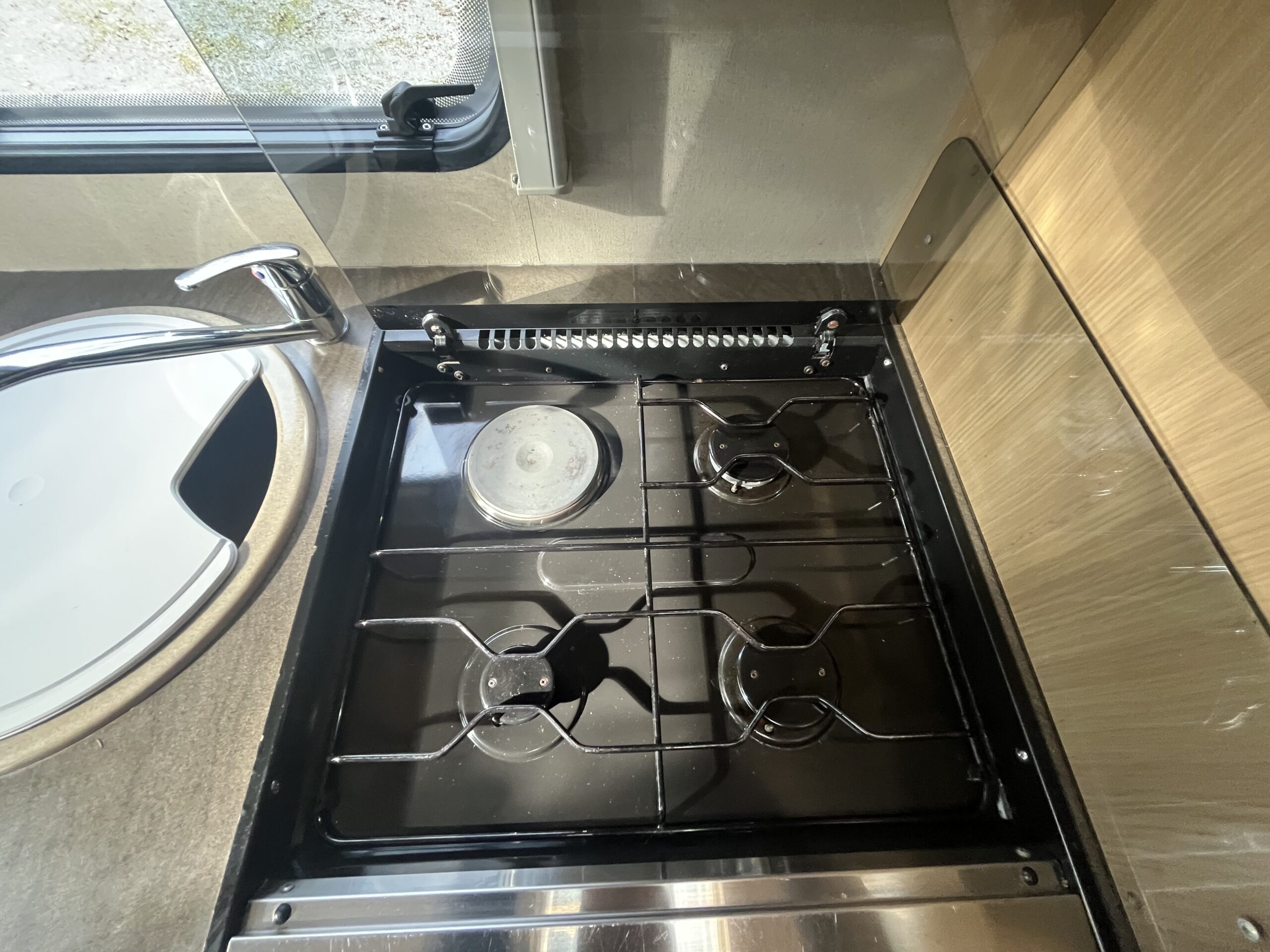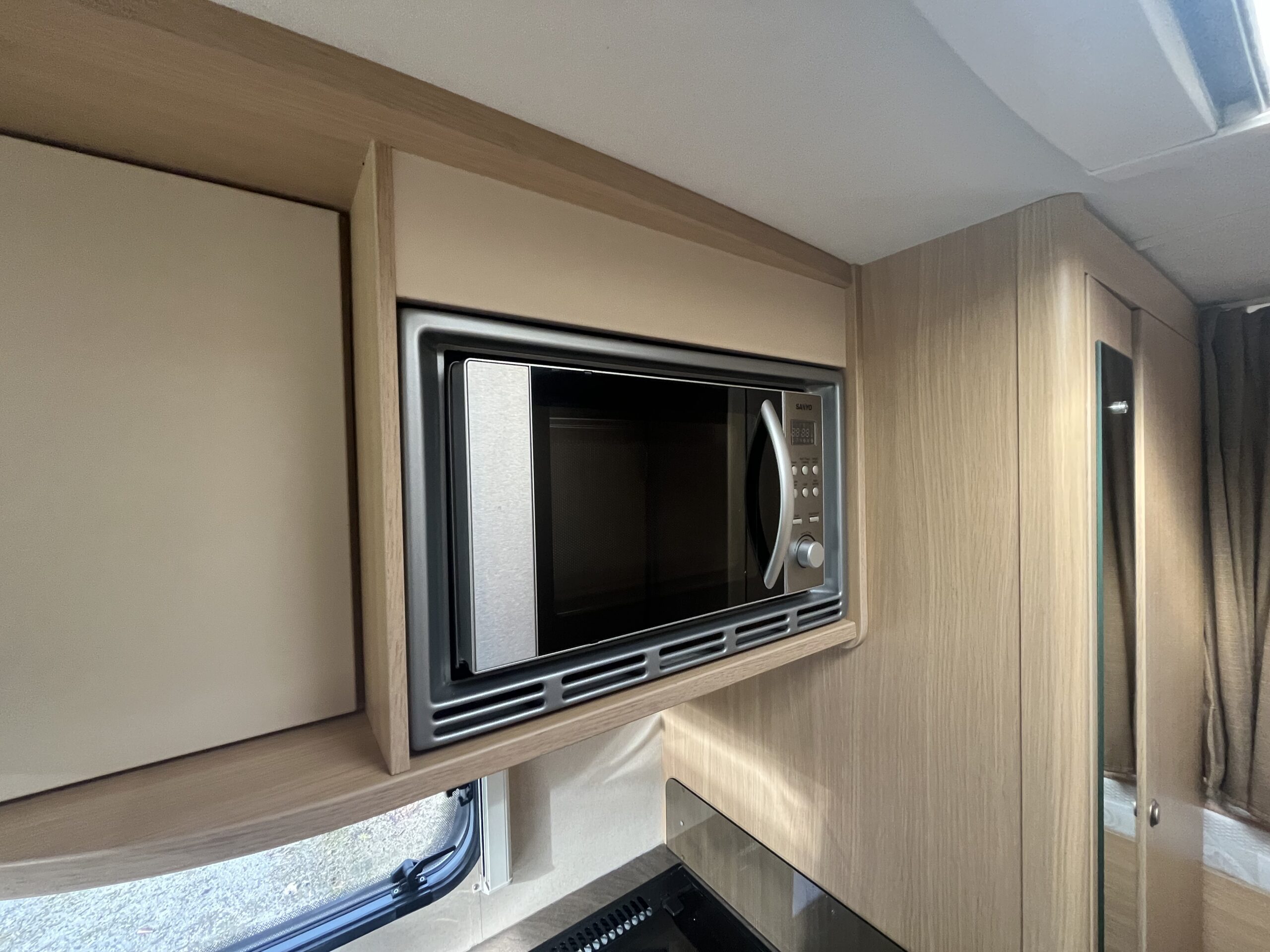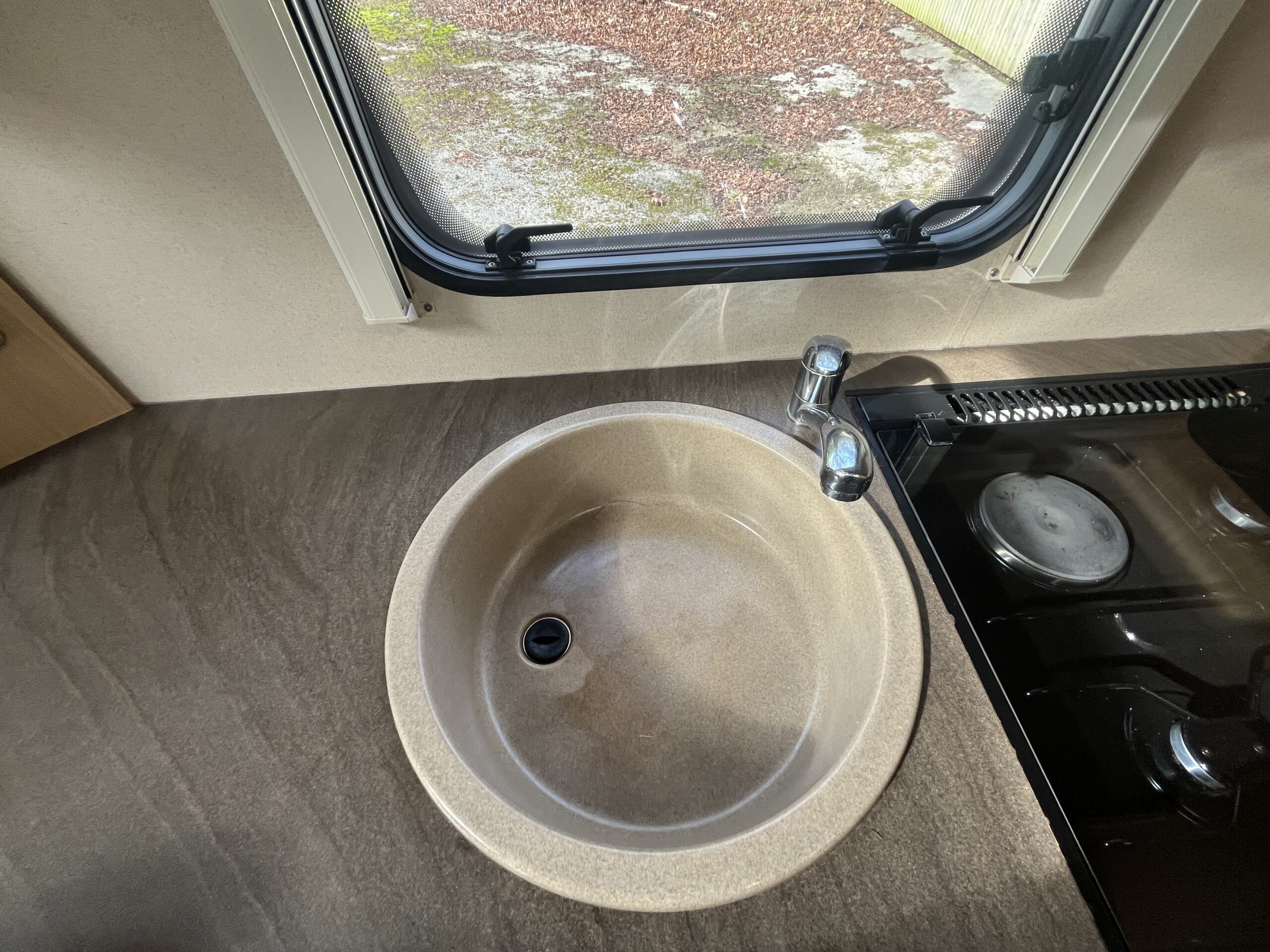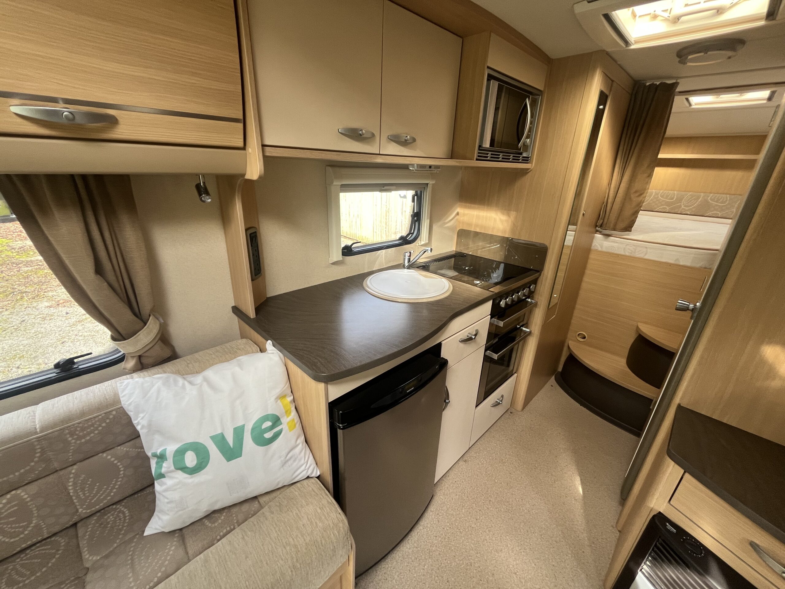 The washroom is a good size with toilet, sink with shower attachment and shower screen. The kitchen has good amount of worktop space and includes cooker with oven, grill, 3 gas burners, 1 electric hob, plus sink, fridge freezer and microwave.