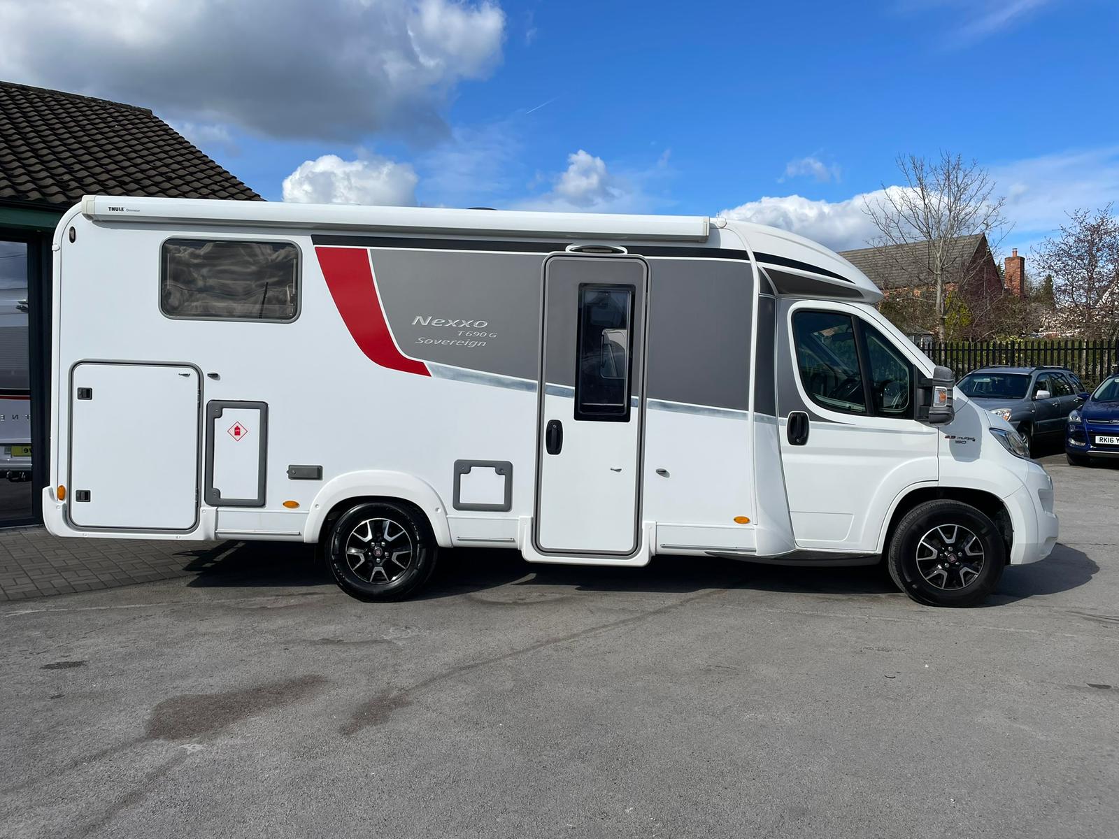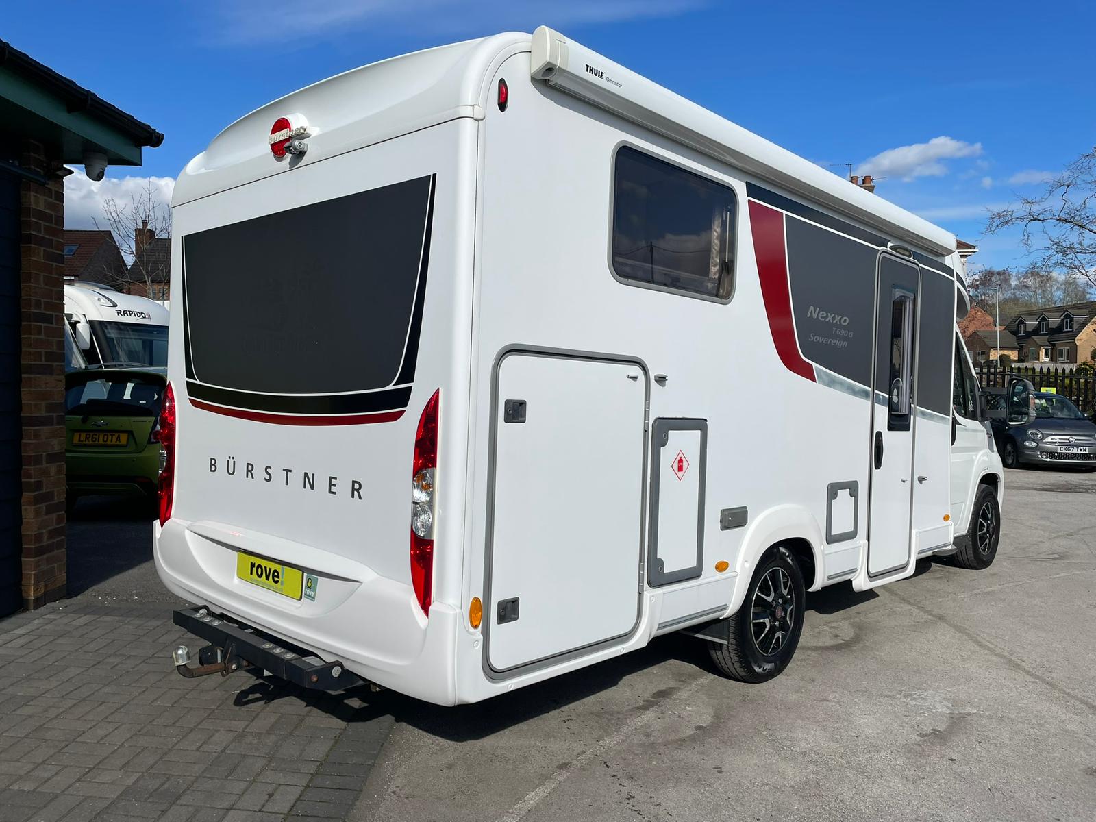 Rove! Motorhomes Selston are pleased to offer this 2017 Burstner Nexxo T690 G 4 berth 4 seat belt motorhome based on the Fiat Automatic 2.3, which has 11003 miles on the clock, Layout features rear twin single beds over a large garage capable of storing just about everything you could ever require on extended adventures.