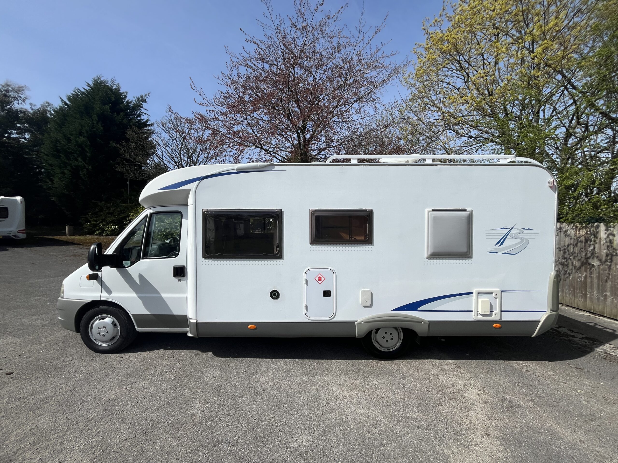 Rove Motorhomes Mansfield are pleased to offer this 2006 Burstner Solano T615 for sale, this is a 4 berth 4 belt motorhome with the desirable Fixed French Bed at the rear. This Burstner is based on the popular Fiat chassis and is powered by a 2.8 litre diesel engine with 5 speed manual transmission and has covered 33,923 miles. The overall length is 6.7 meters and due to the weight of the motorhome you do require a C1 license to drive the vehicle.