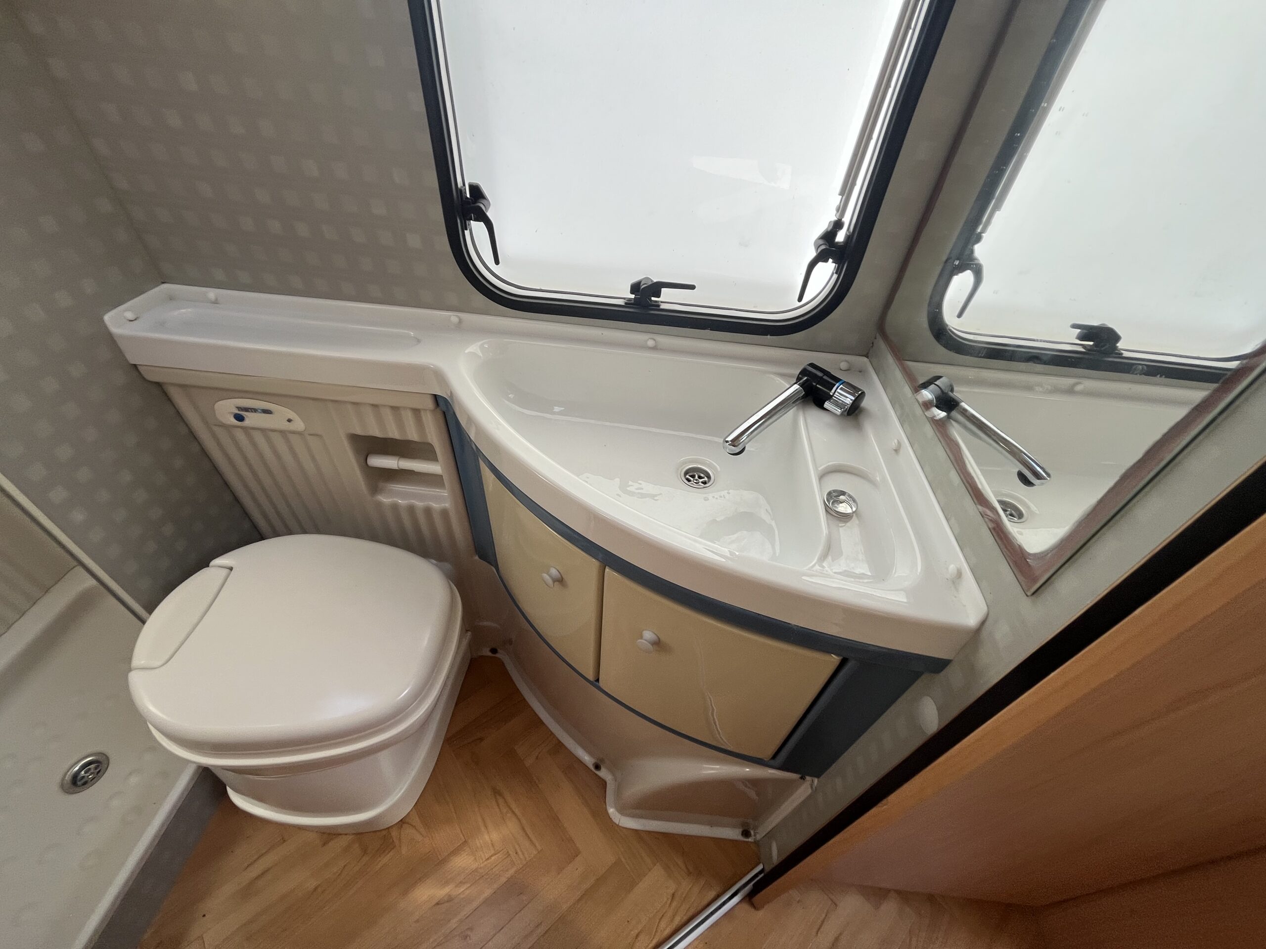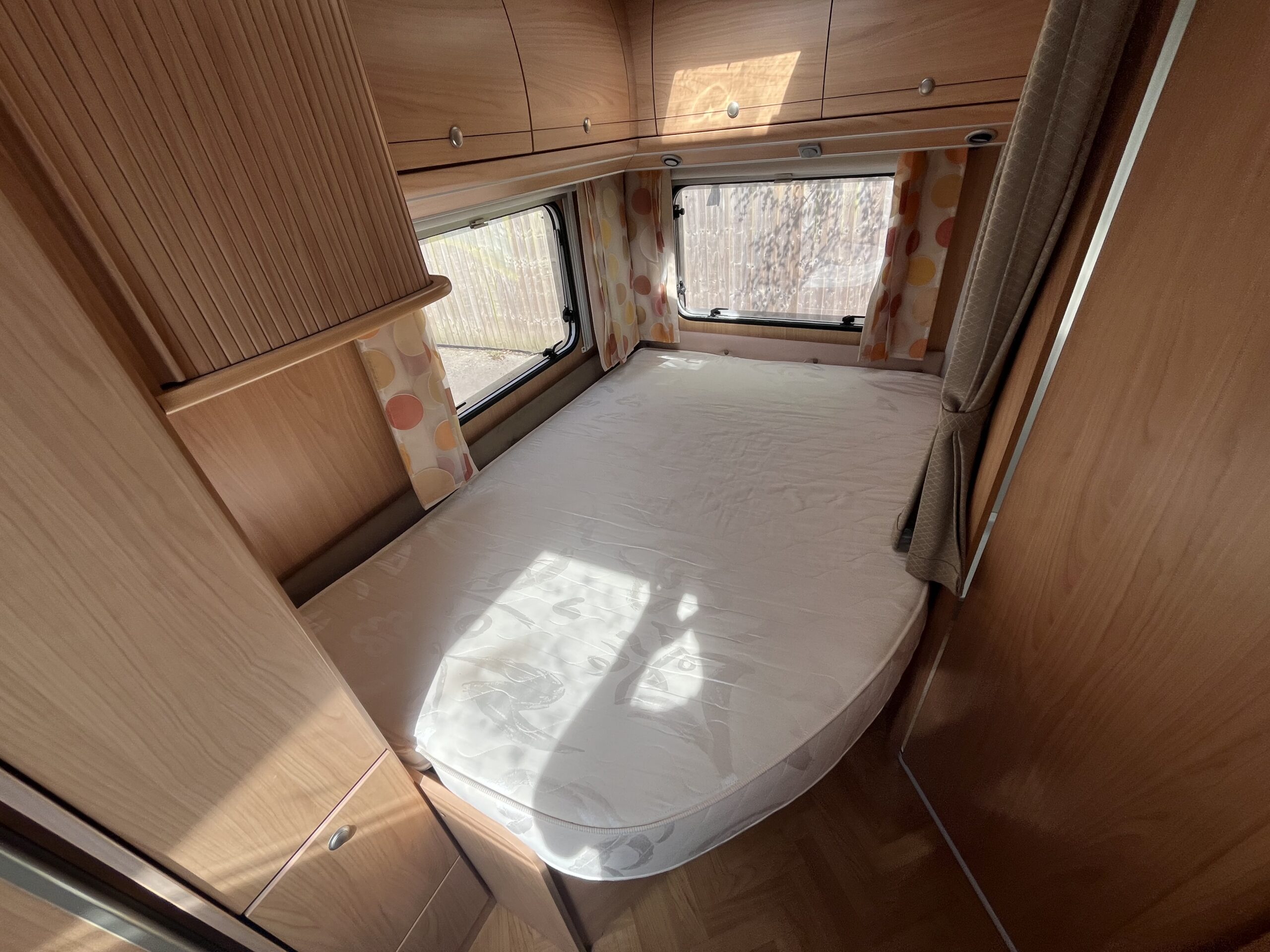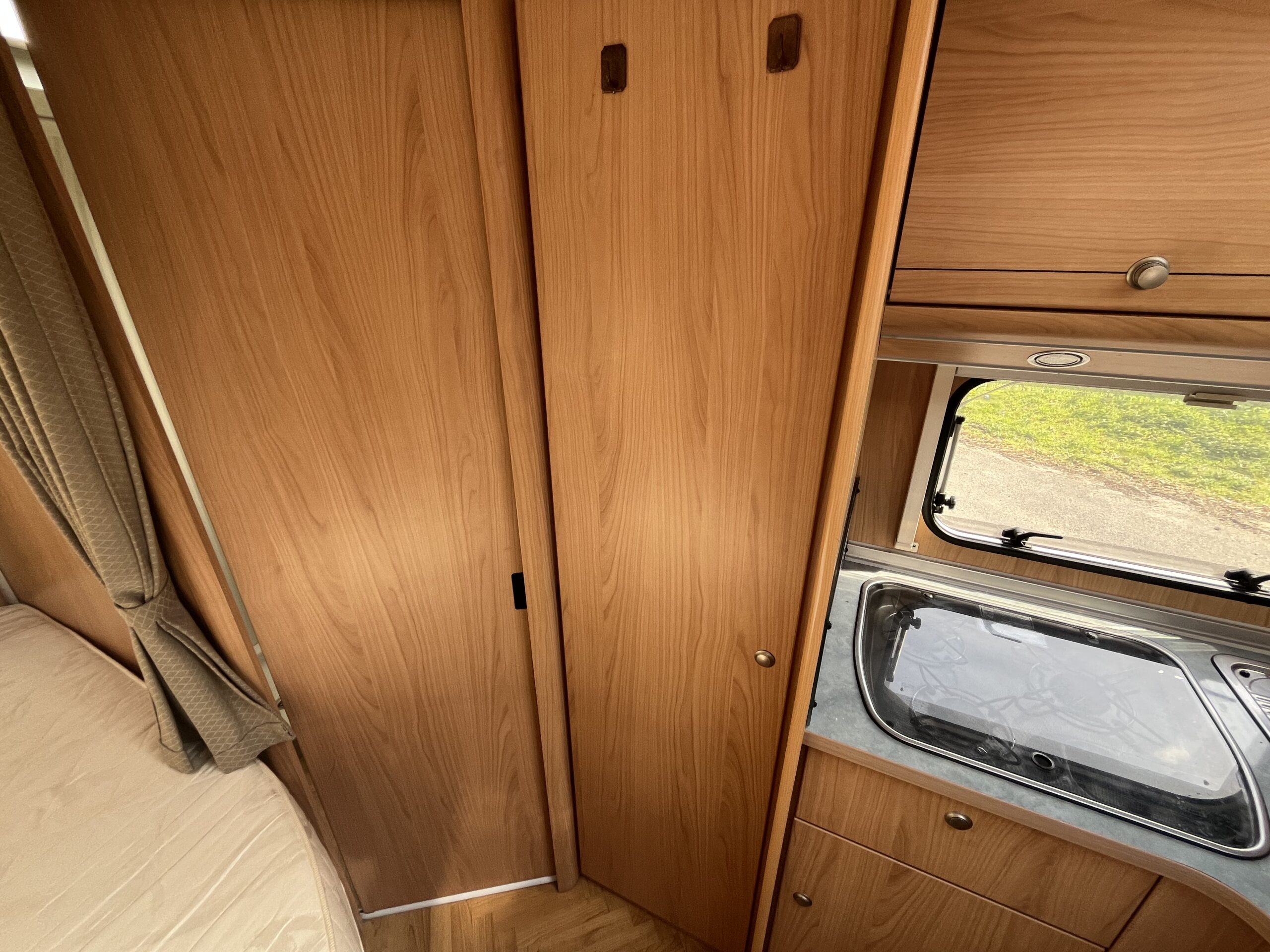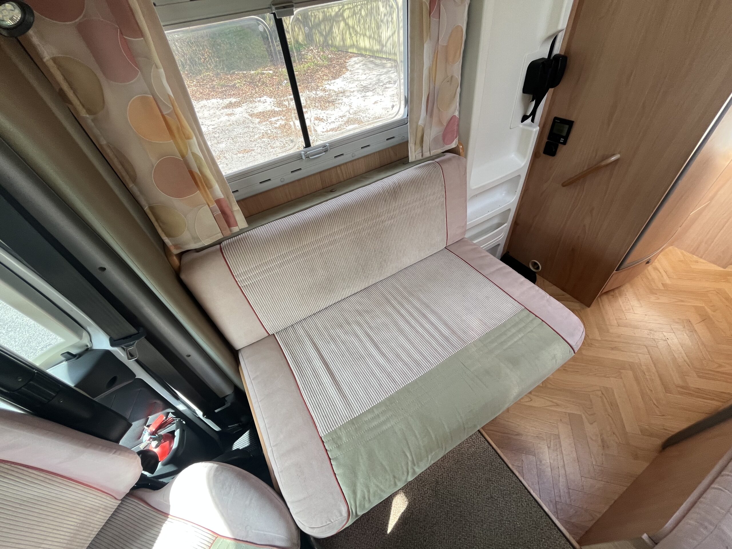 Layout – Starting at the rear this model features the very sought after large fixed french bed. Underneath the bed you have storage space by lifting the bed and this can also be accessed from outside the vehicle. To the right of the bed, we find the large washroom this is well equipped and comes with the desired seperate shower cubicle, toilet, washbasin and vanity mirrors. Mid habitation is the kitchen and this is made up of 3 gas hobs, 3-way fridge with freezer space, oven/grill combi and sink. Finally towards the front of the T615 we have the spacious dinette area made from one forward facing bench with adjustable table and side bench and the whole area can be converted into an extra double bed if needed. Both front seats swivel into the habitation area to allow you to sit 4 comfortably around the table. The Burstner has plenty of surrounding storage as well as a large wardrobe area and these units have all been well maintained and the inside of the vehicle really has been well looked after.
