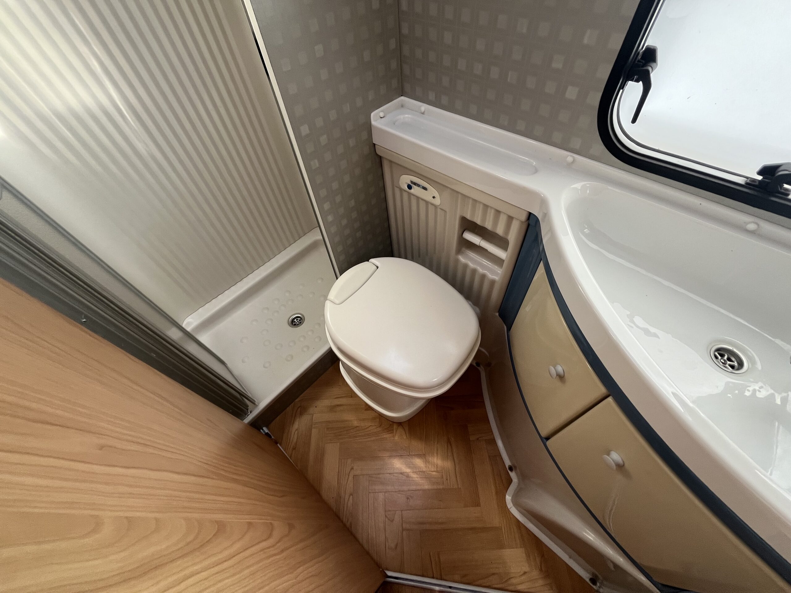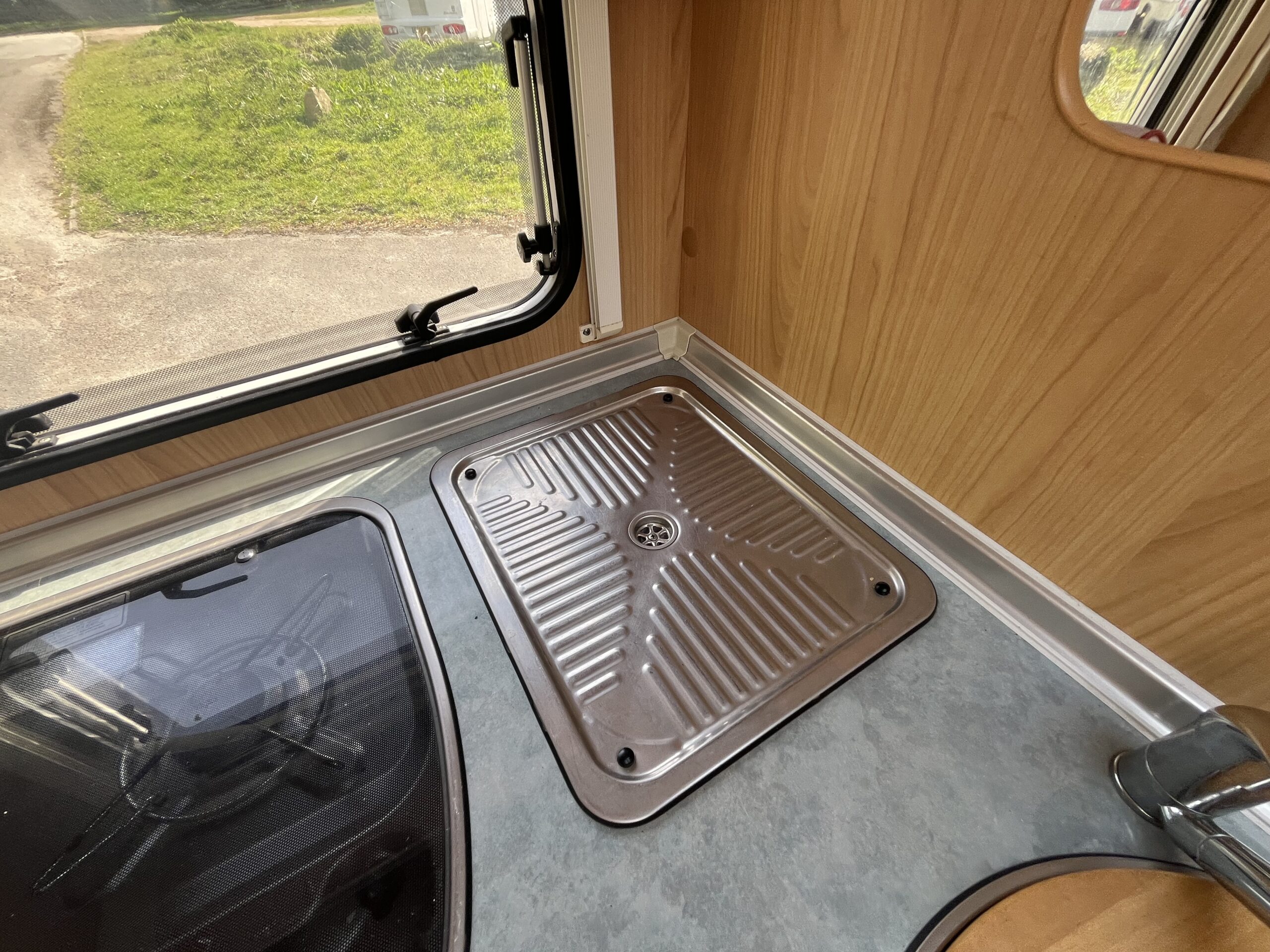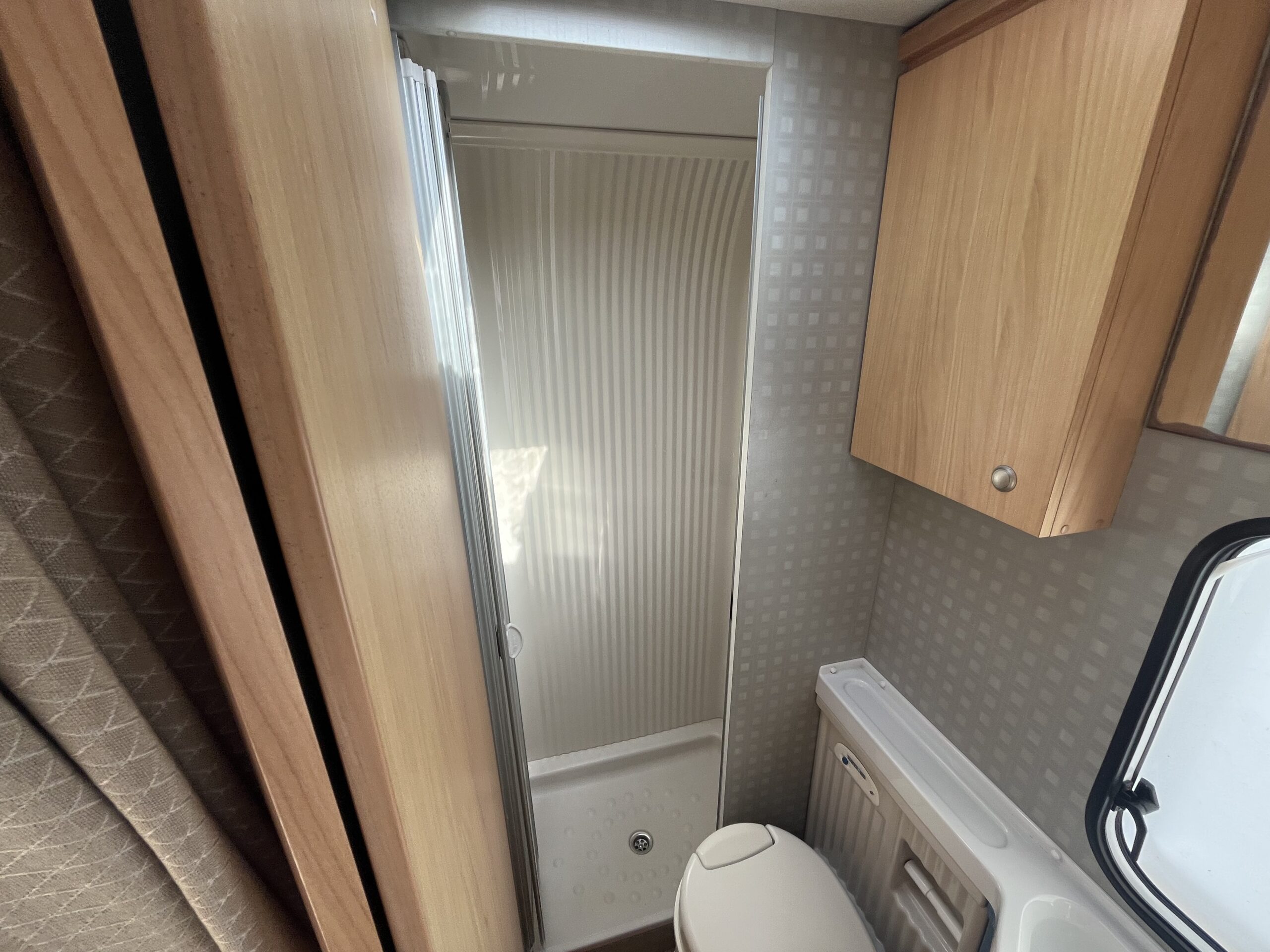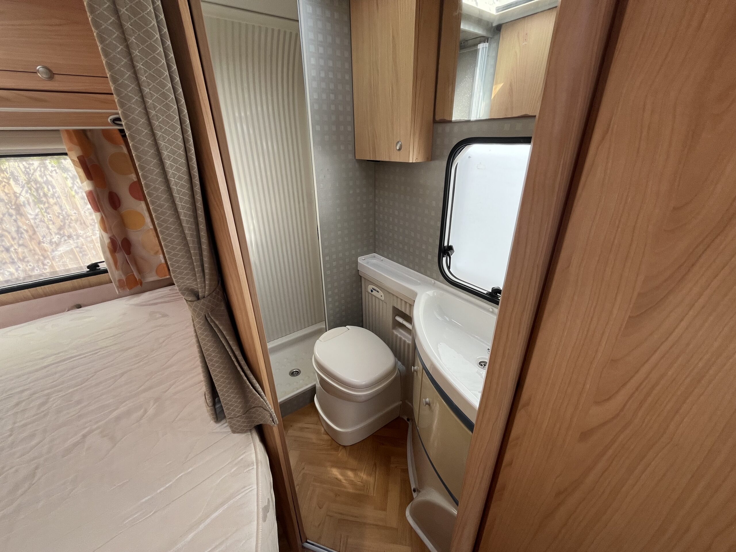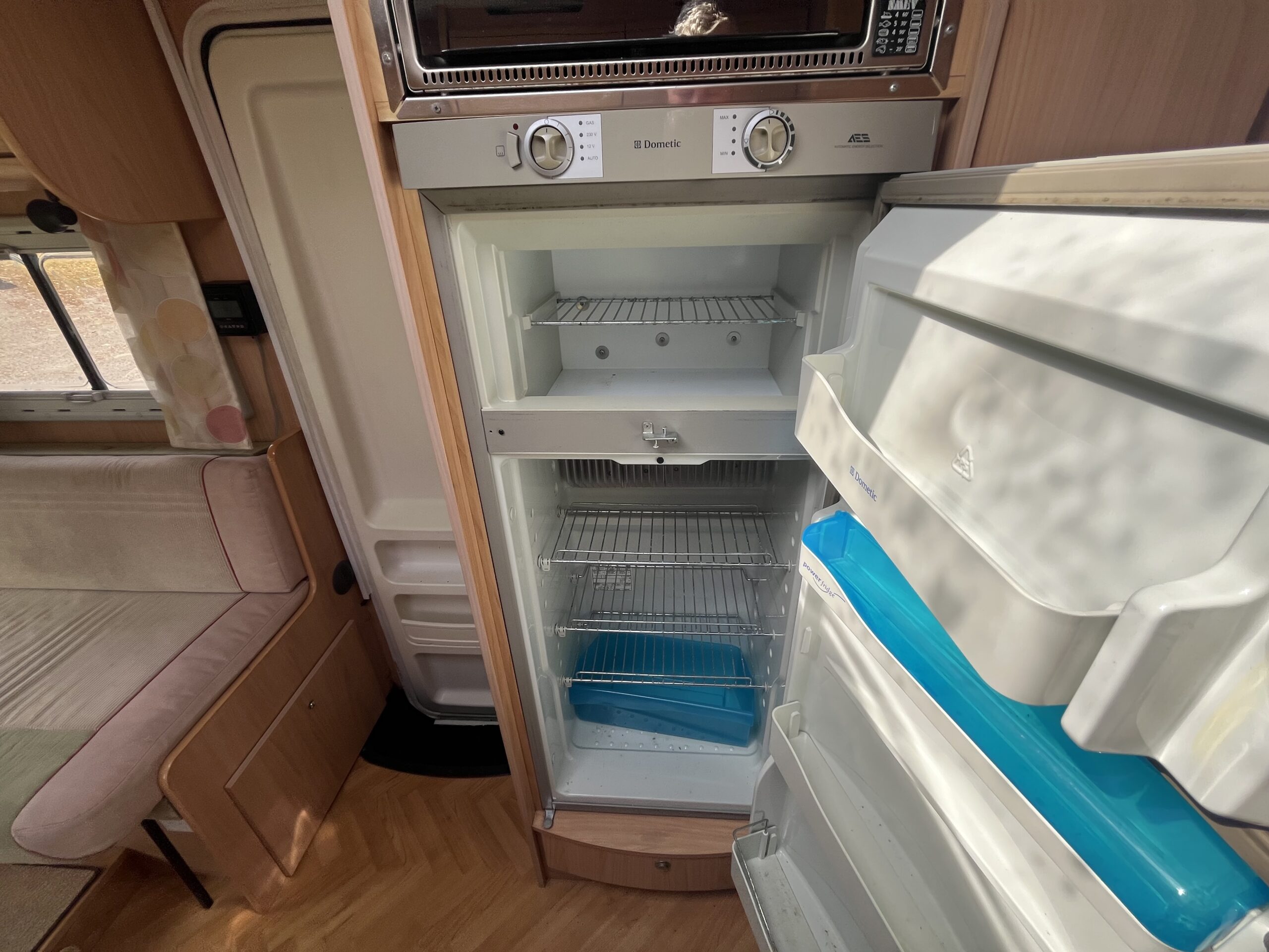 Layout – Starting at the rear this model features the very sought after large fixed french bed. Underneath the bed you have storage space by lifting the bed and this can also be accessed from outside the vehicle. To the right of the bed, we find the large washroom this is well equipped and comes with the desired seperate shower cubicle, toilet, washbasin and vanity mirrors. Mid habitation is the kitchen and this is made up of 3 gas hobs, 3-way fridge with freezer space, oven/grill combi and sink. Finally towards the front of the T615 we have the spacious dinette area made from one forward facing bench with adjustable table and side bench and the whole area can be converted into an extra double bed if needed. Both front seats swivel into the habitation area to allow you to sit 4 comfortably around the table. The Burstner has plenty of surrounding storage as well as a large wardrobe area and these units have all been well maintained and the inside of the vehicle really has been well looked after.