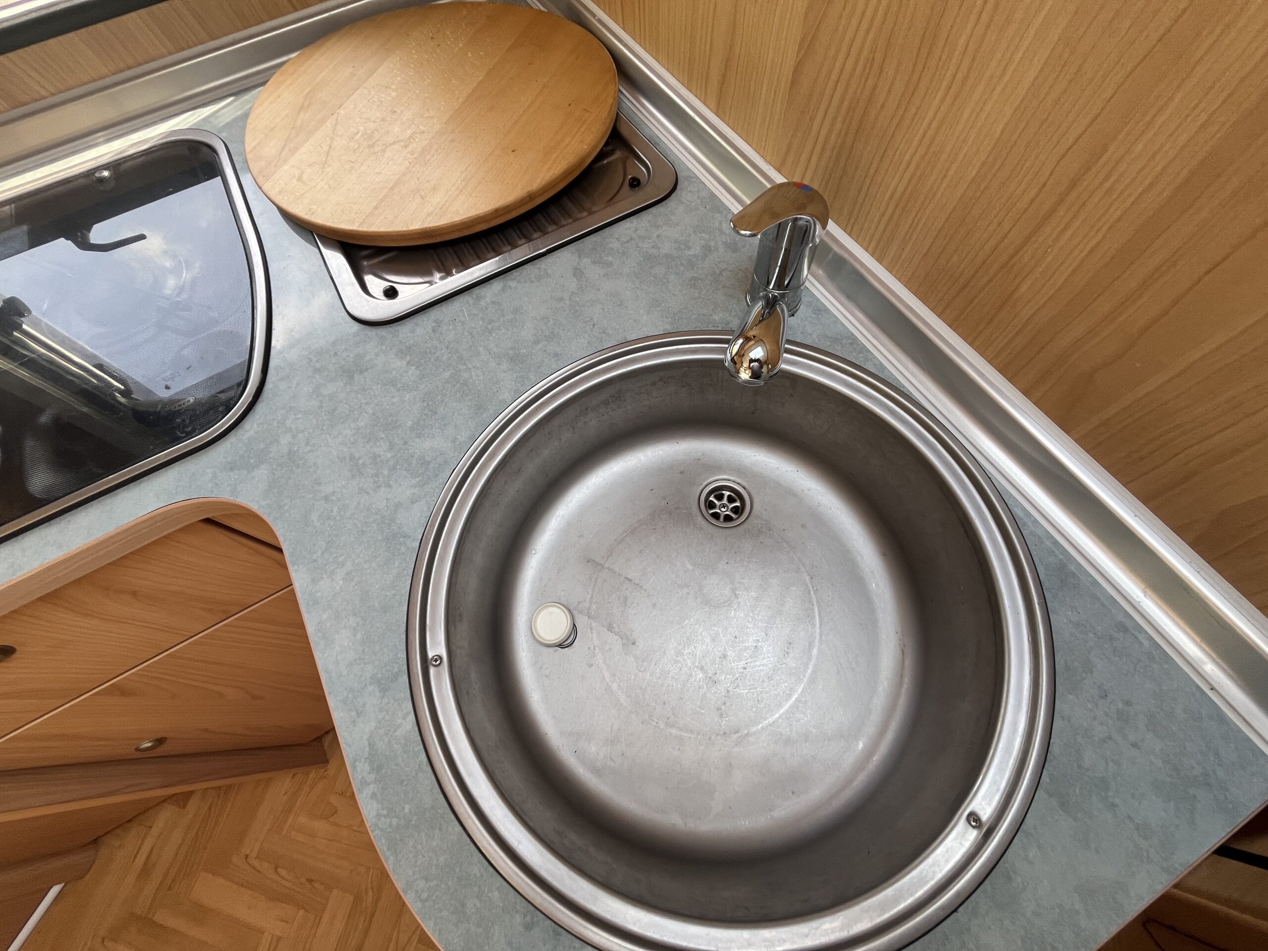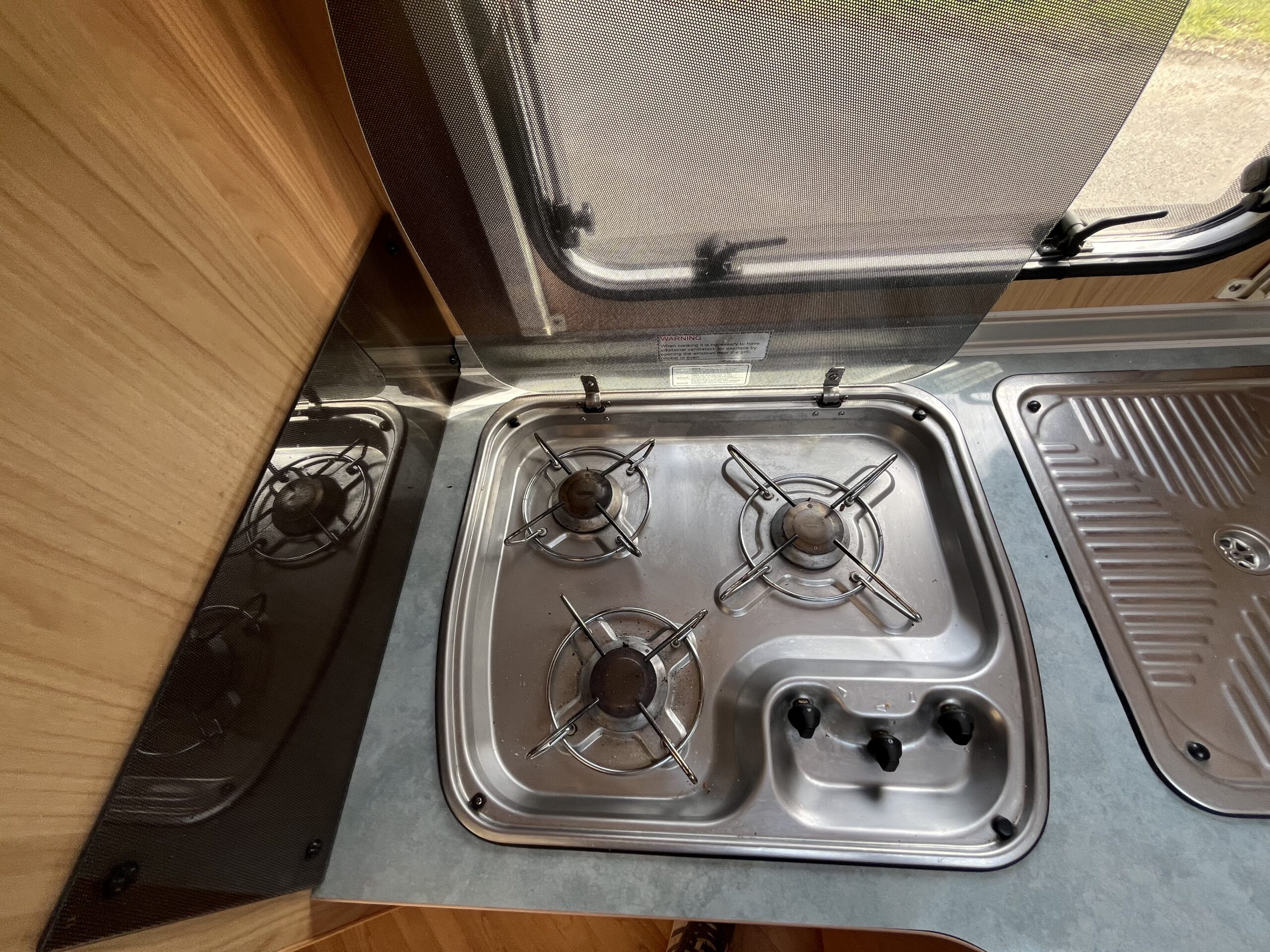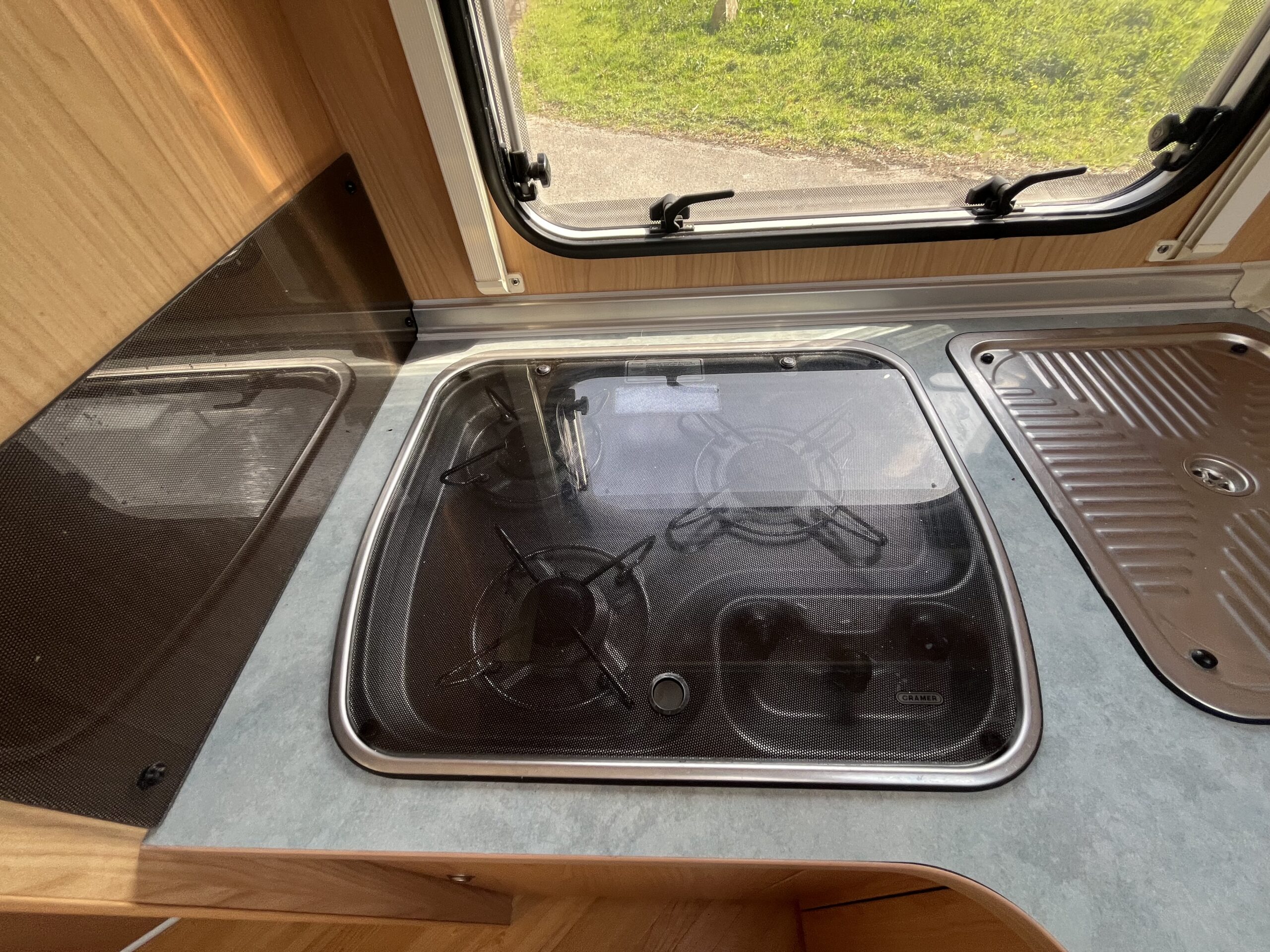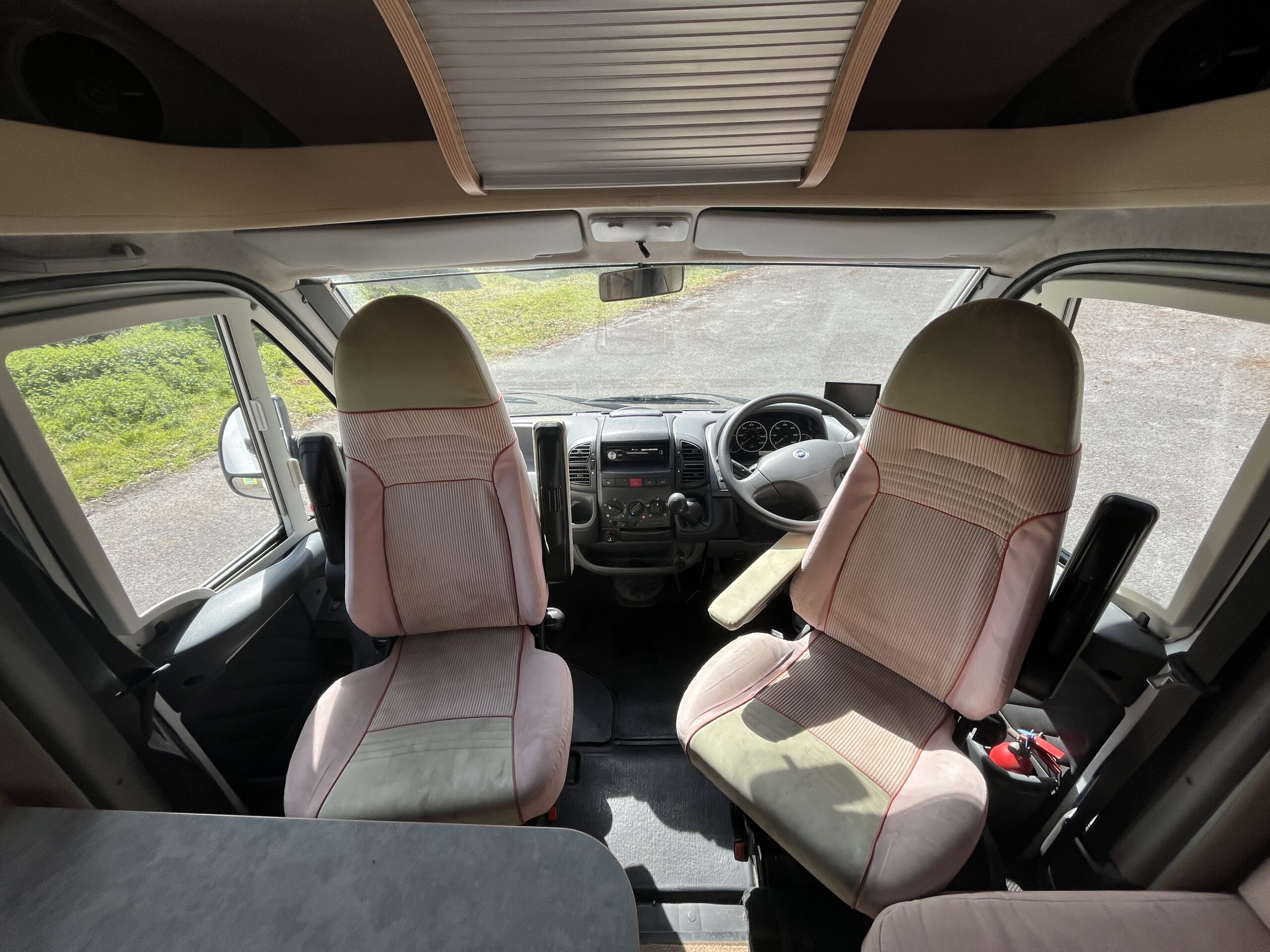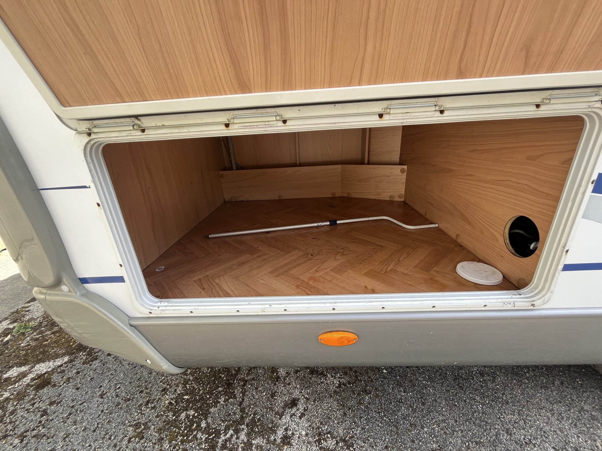 Layout – Starting at the rear this model features the very sought after large fixed french bed. Underneath the bed you have storage space by lifting the bed and this can also be accessed from outside the vehicle. To the right of the bed, we find the large washroom this is well equipped and comes with the desired seperate shower cubicle, toilet, washbasin and vanity mirrors. Mid habitation is the kitchen and this is made up of 3 gas hobs, 3-way fridge with freezer space, oven/grill combi and sink. Finally towards the front of the T615 we have the spacious dinette area made from one forward facing bench with adjustable table and side bench and the whole area can be converted into an extra double bed if needed. Both front seats swivel into the habitation area to allow you to sit 4 comfortably around the table. The Burstner has plenty of surrounding storage as well as a large wardrobe area and these units have all been well maintained and the inside of the vehicle really has been well looked after.