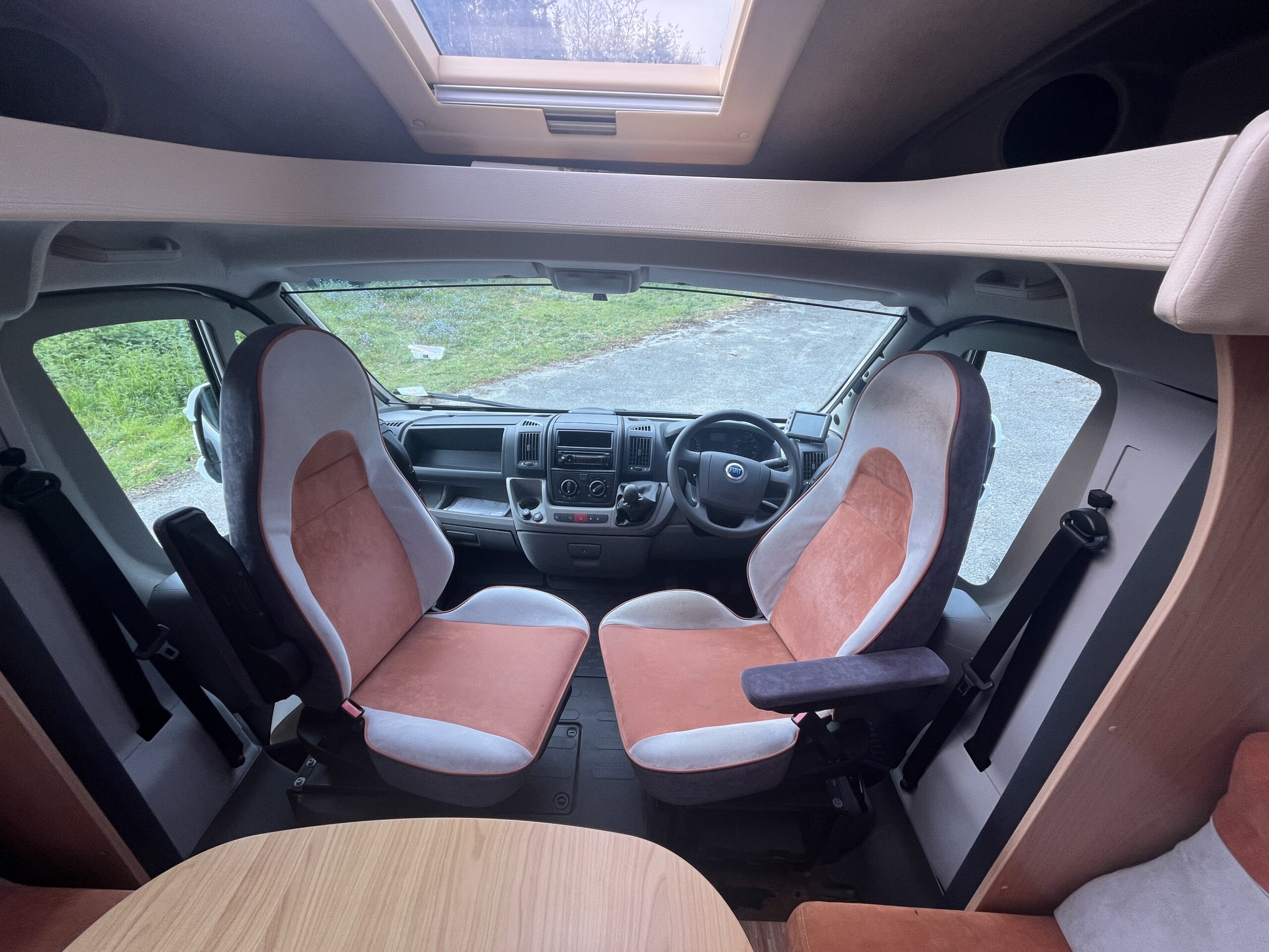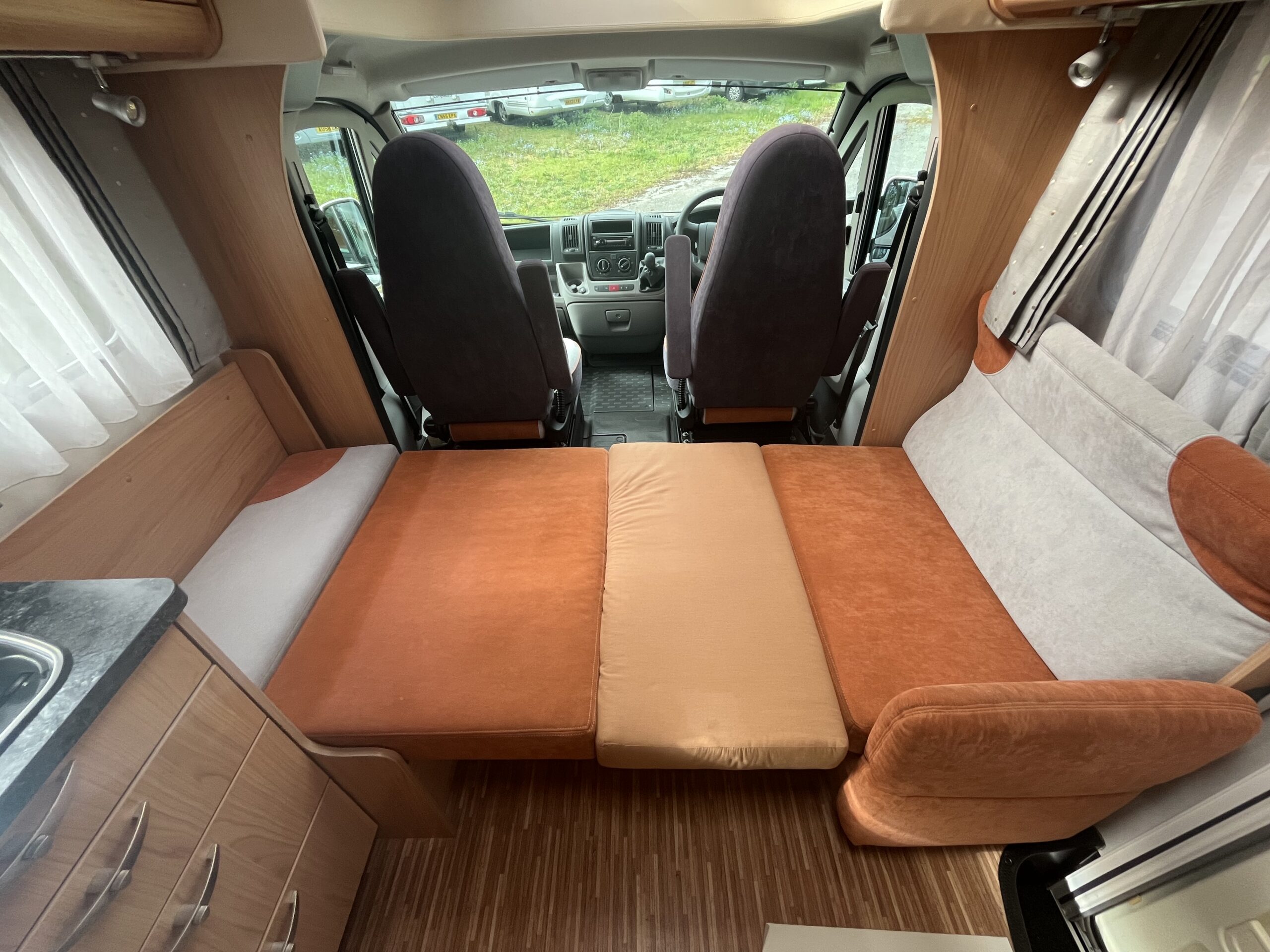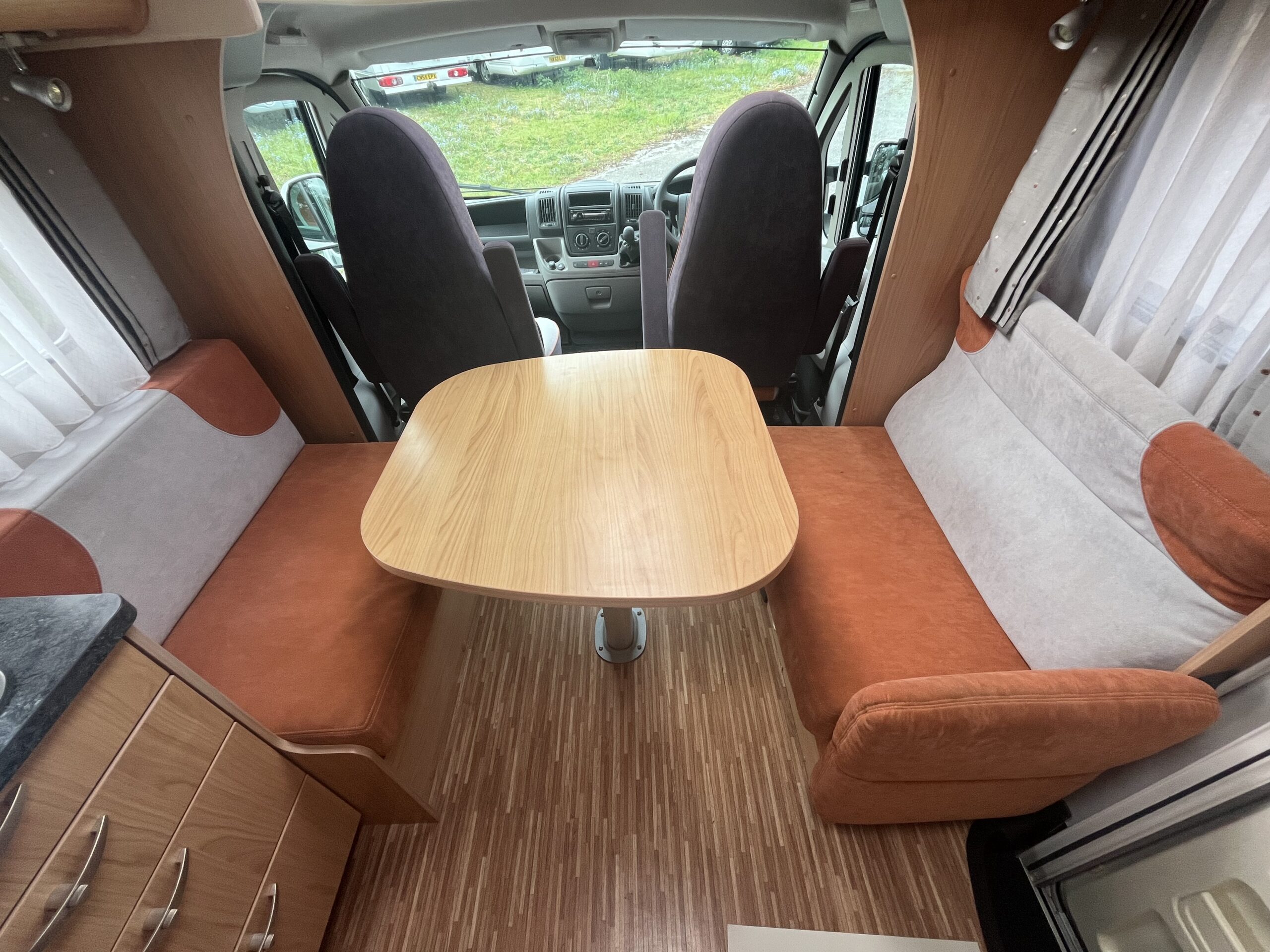 At the front there is the dinette space around the central table, the individual seats makes up into a single bed giving the third sleeping area.