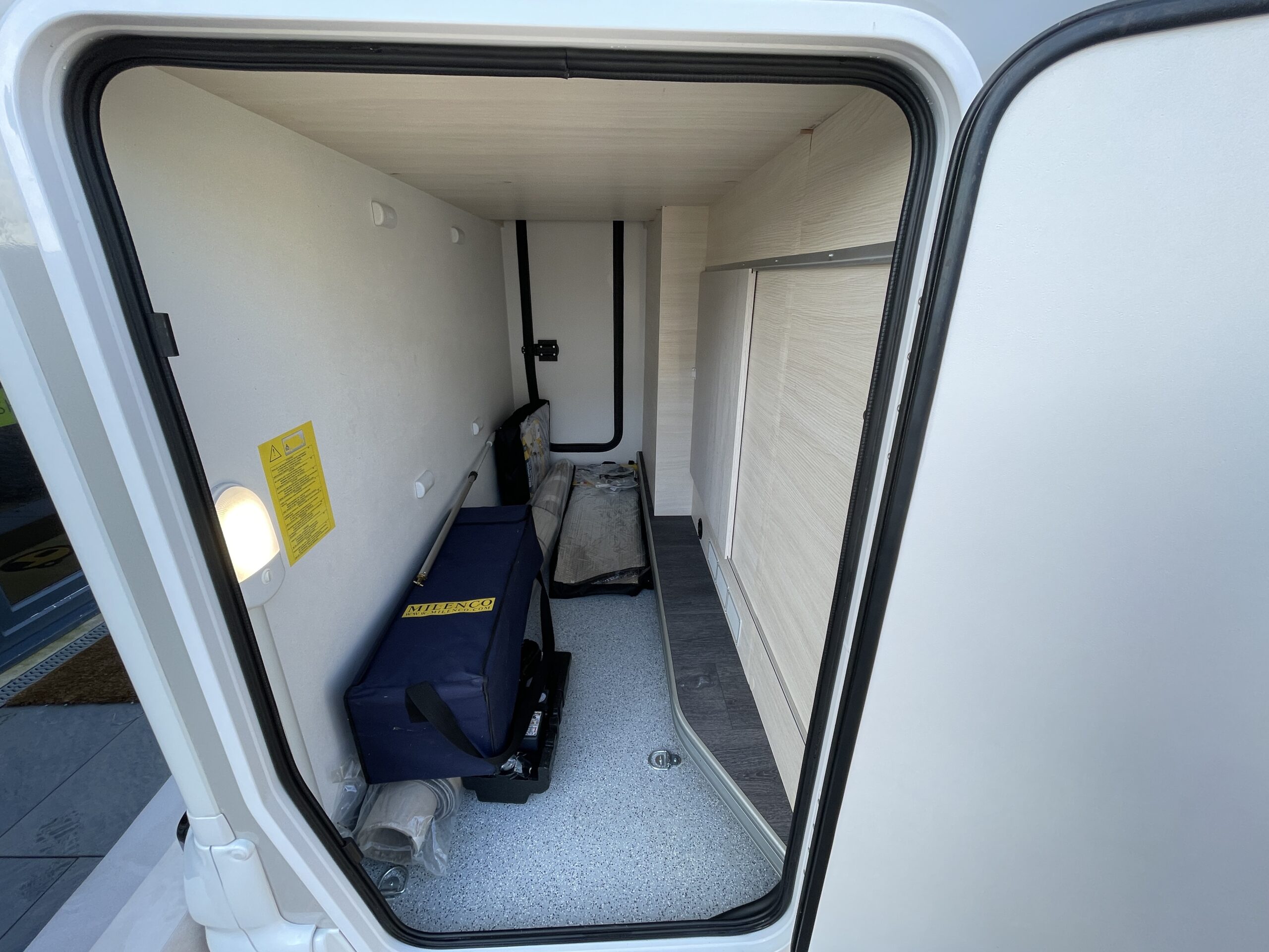 Moving outside you do benefit from a garage for additional storage and a solar panel to keep power levels topped up. It also has a wind out canopy which is great to create a large outside space to relax in!