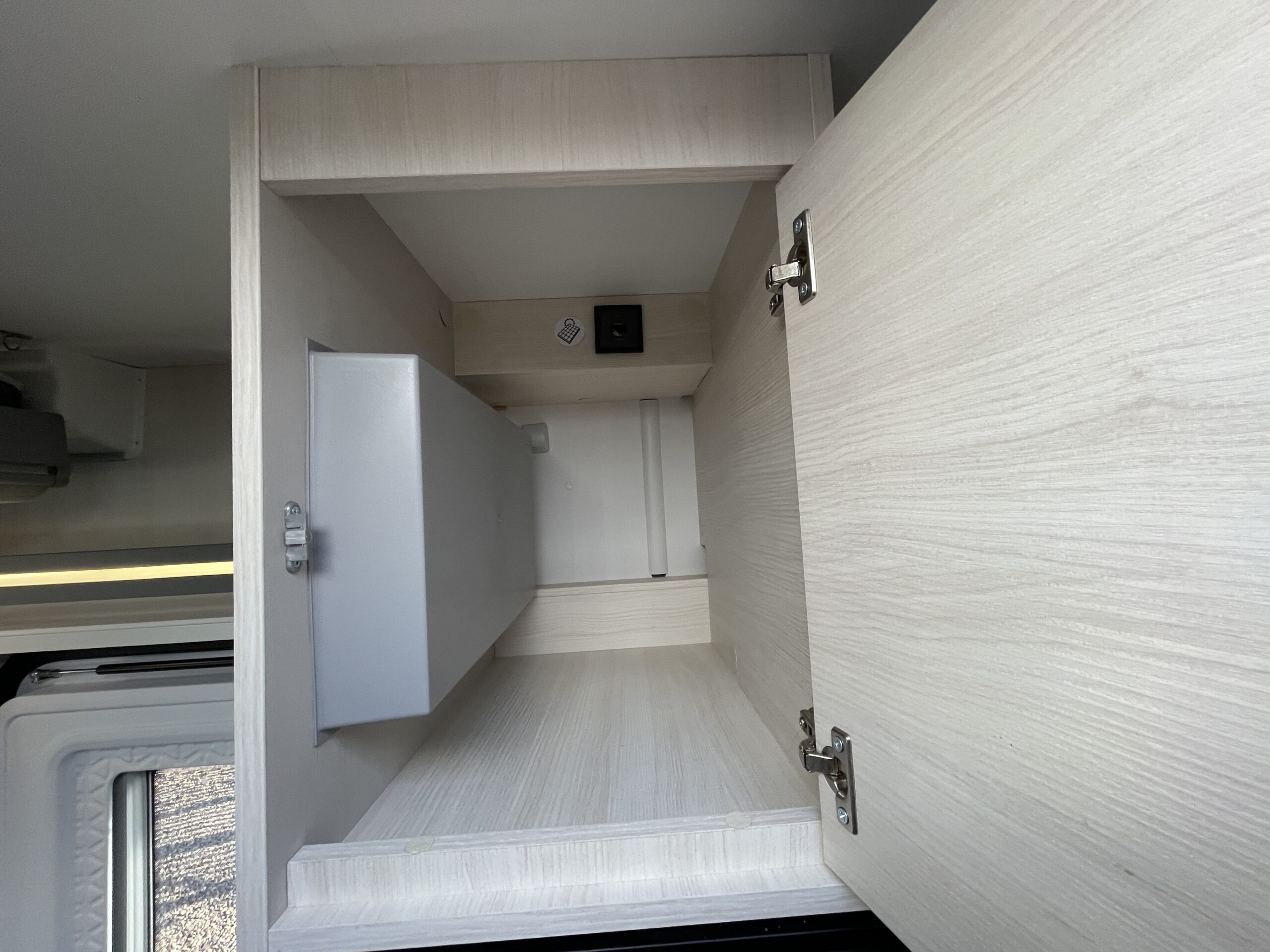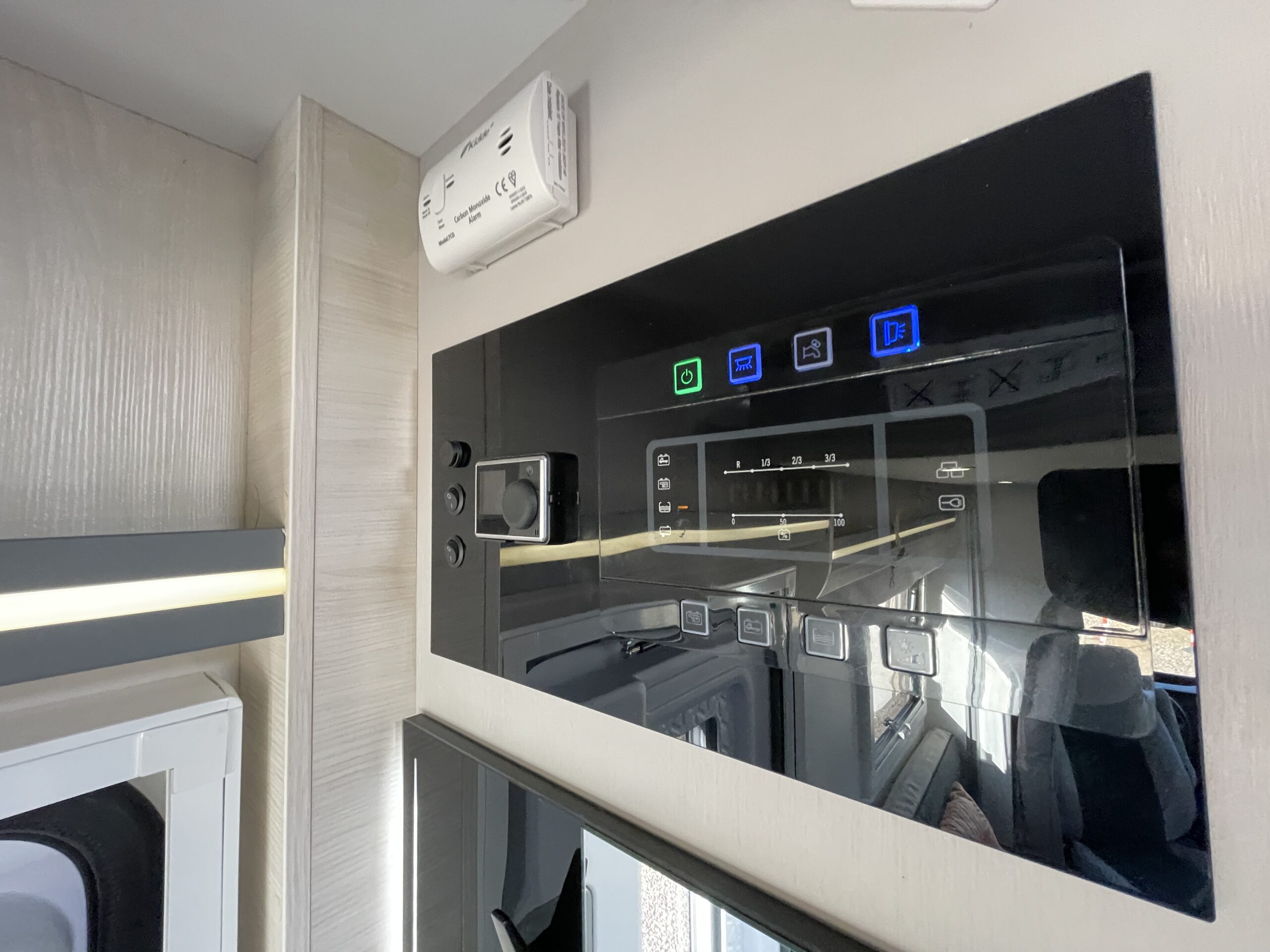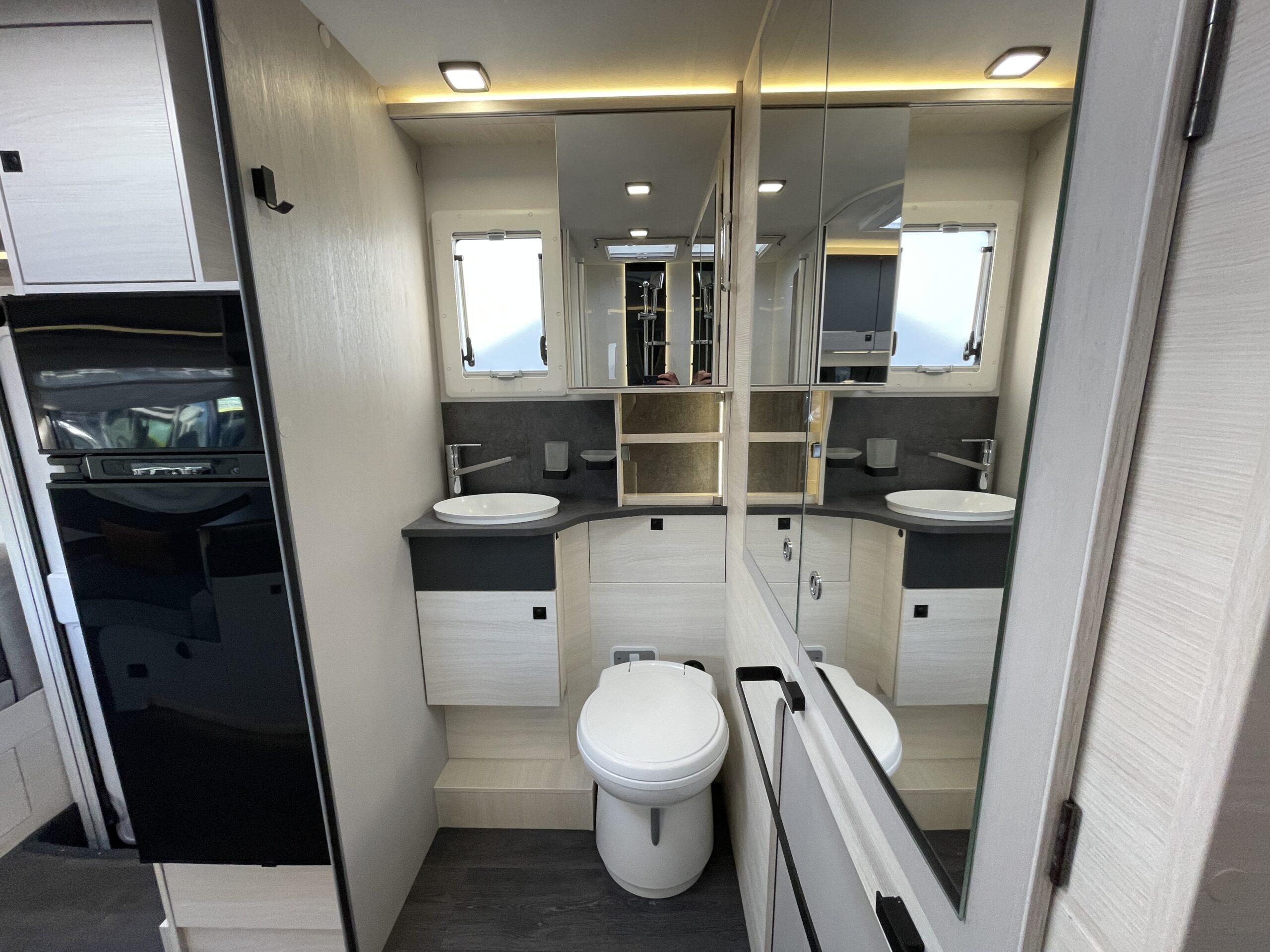 The lounge/dinette area is a superb space for entertaining or relaxing in; you have two opposing benches which can be used to create a 2 berth. You also benefit from pop up seats under the benches! Above there is a large 2 berth drop down bed. Moving to the rear you have the kitchen where there is a 2 gas hob with electric plate, oven/grill combi, XL large fridge with separate freezer, sink with mixer tap and storage. At the rear is a full width washroom with a toilet, sink with mixer tap, separate shower cubicle and a very large storage cupboard with plenty of shelves. The motorhome uses the Truma boiler for heating and hot water and Webasto altitude diesel heating.