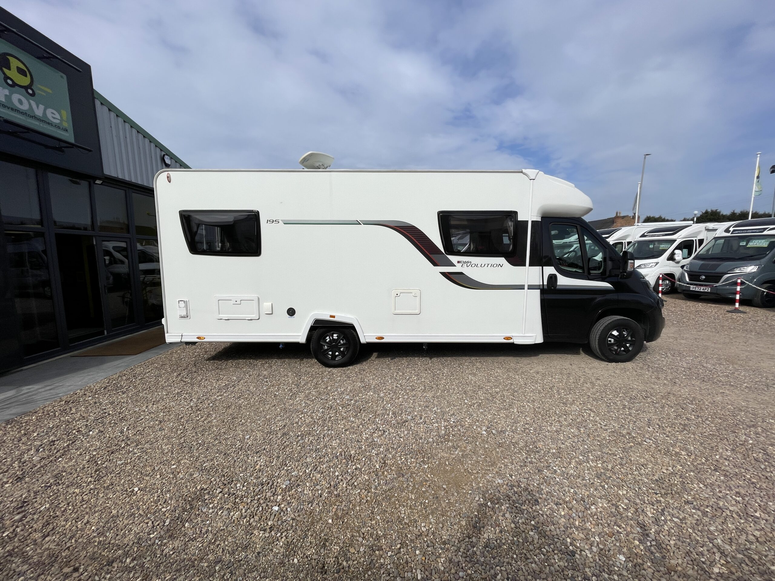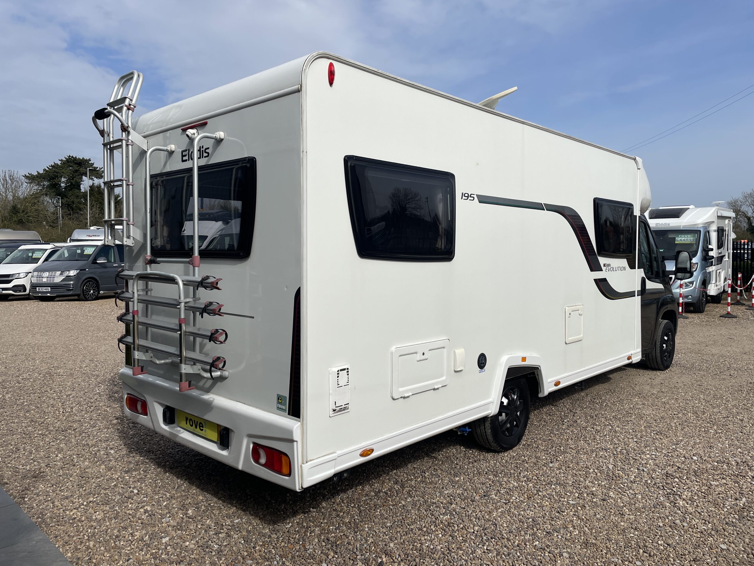Rove Motorhomes Gunthorpe are pleased to offer this stunning Elddis Evolution 195. The 195 is a fantastic open plan model in the range which can sleep and travel up to 4 guests. It is based on a Peugeot chassis with a 2198cc chain driven diesel engine and a 6-speed manual gearbox. The cabin benefits from a rear camera, air conditioning, touchscreen Bluetooth radio, cruise control, swivel seats and Remis blinds. This 195 has excellent maintenance history to back up its fantastic condition.