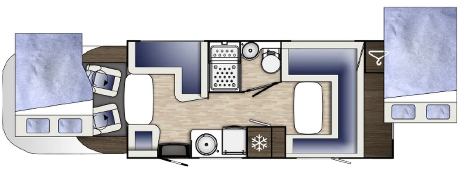 The Hobby Toskana Exclusive 750 features the End washroom with 2 single beds at the rear with storage beneath, a shower-enclosed washroom at the rear, a well-equipped kitchen with a large fridge/freezer and oven, a spacious lounge with swivel cab seats and 4 belted seats. You will also notice the quality of the build inside, the beautiful lighting throughout and plenty of easy of the eye storage cupboards.