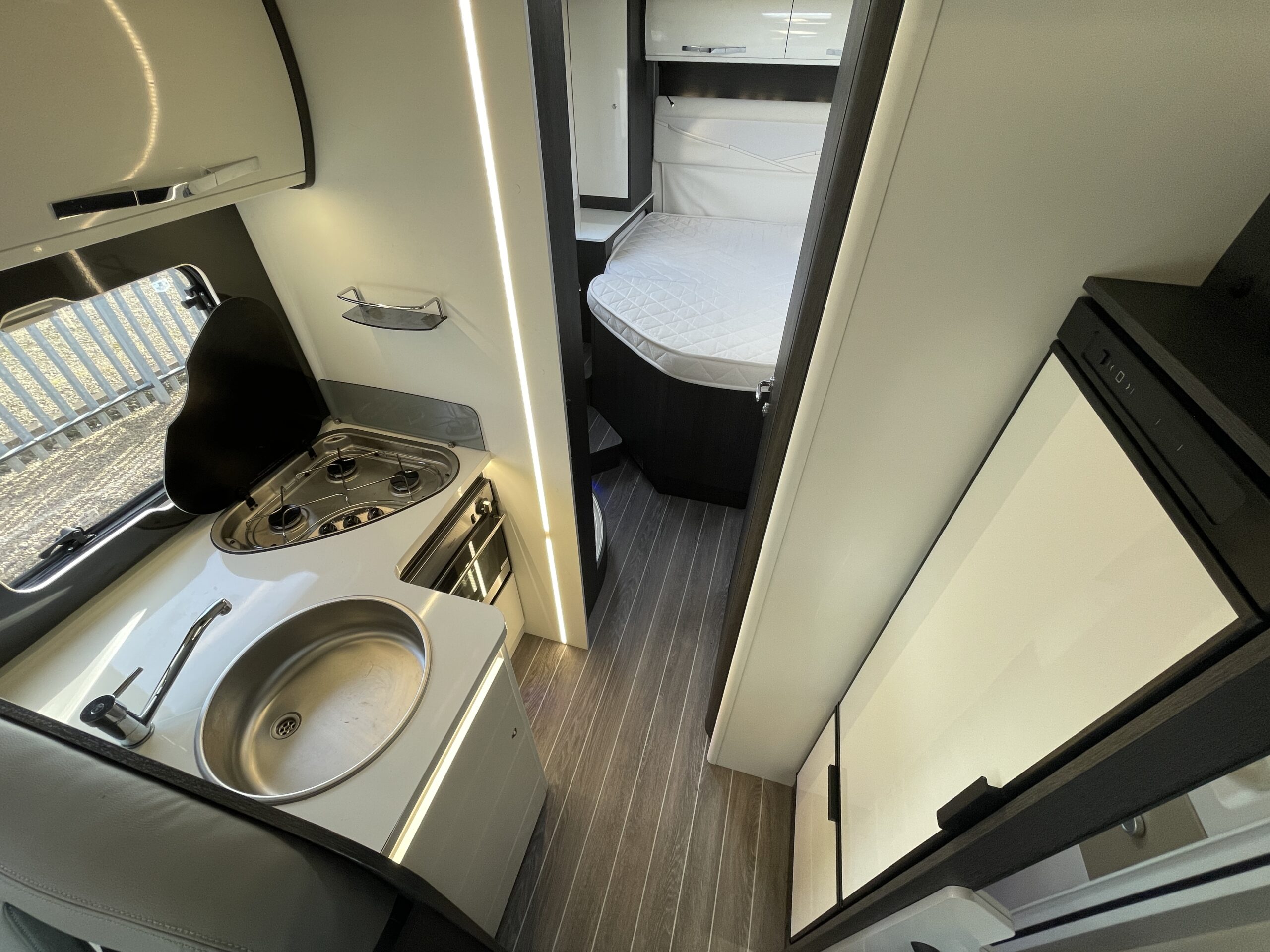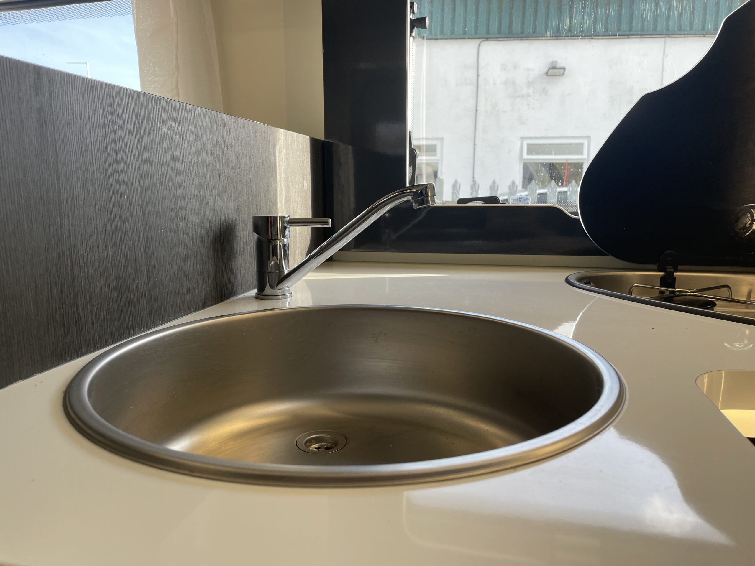 Entering the 696 via the habitation door your straight into the front lounge/dinette area; this area can comfortably accommodate up to 5 guests utilising the swivel seats. You also beenfit from a double drop down bed to help save on space.
