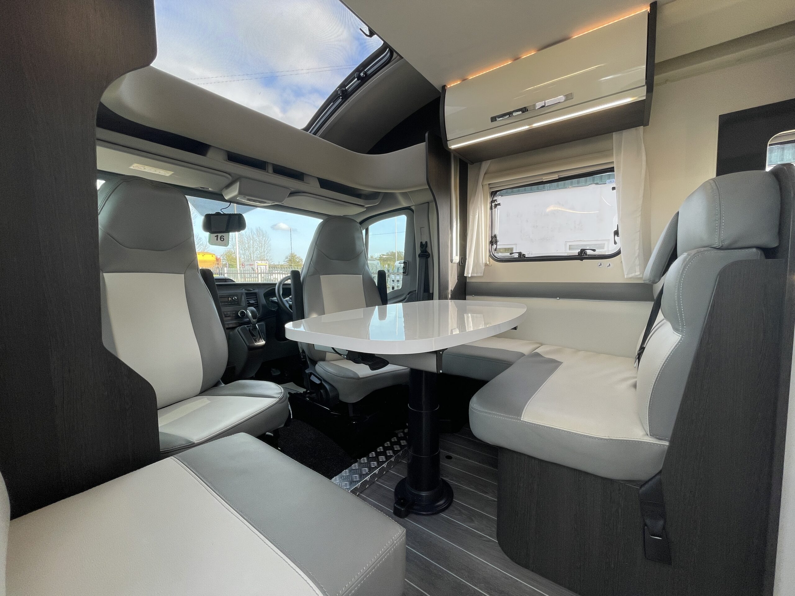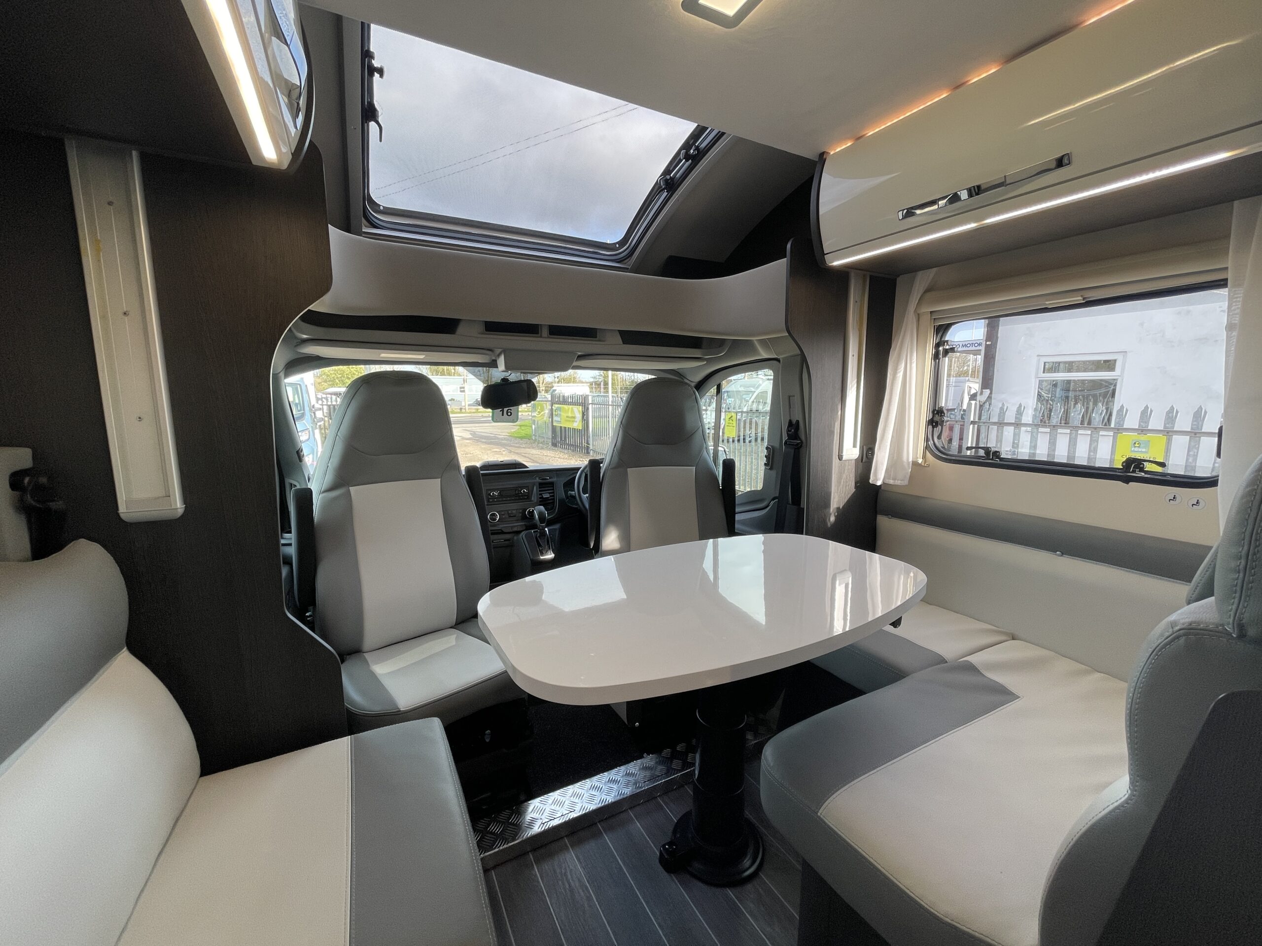 Rove Motorhomes Gunthorpe are pleased to present for sale this Roller Team Zefiro 696. If you’re a small family or a couple who wants on and off grid capabilities this example offers little compromises. This example is based on the FORD chassis with a 1995cc diesel engine and desirable automatic transmission. The cabin also benefits from air conditioning, reversing camera, cruise control, Bluetooth radio, cab blinds, Electric Windows and Electric Mirrors.