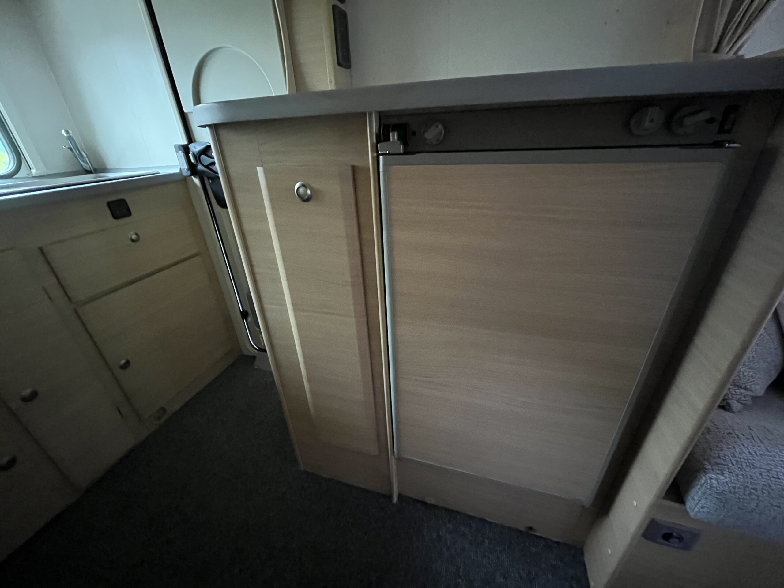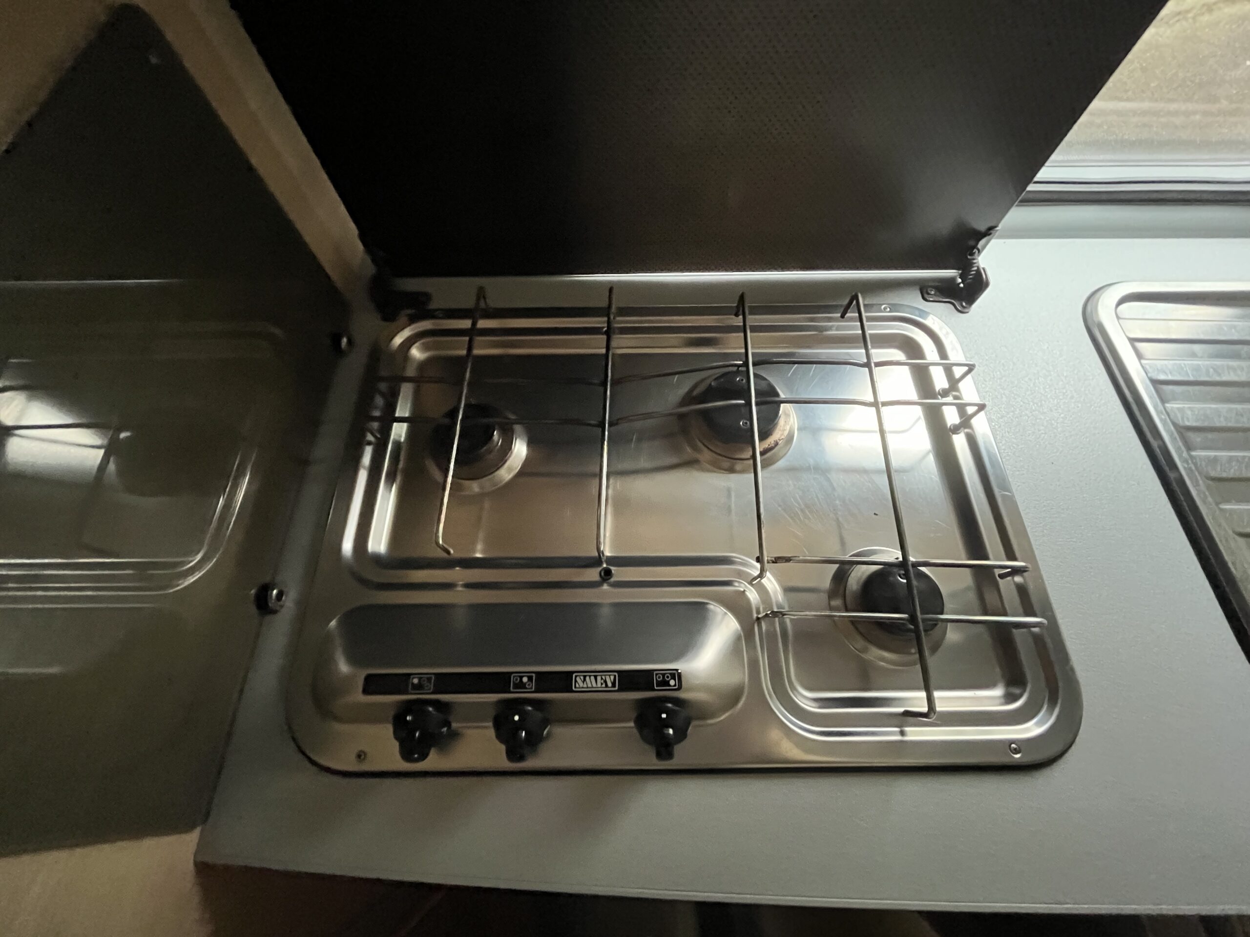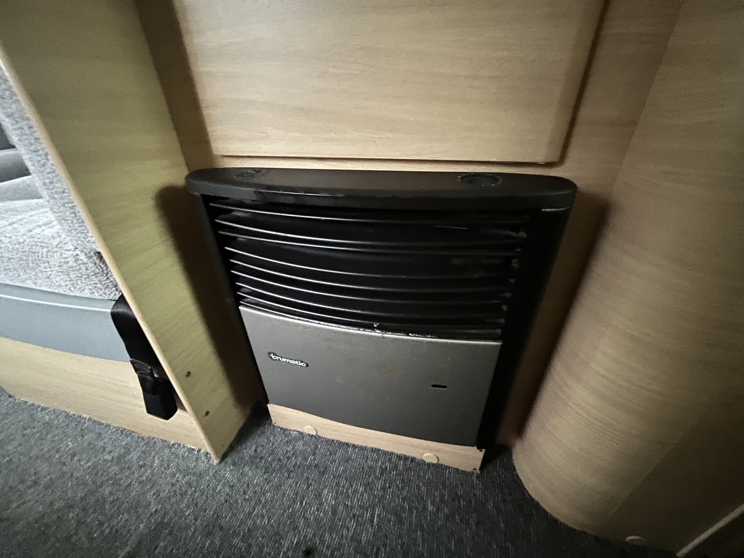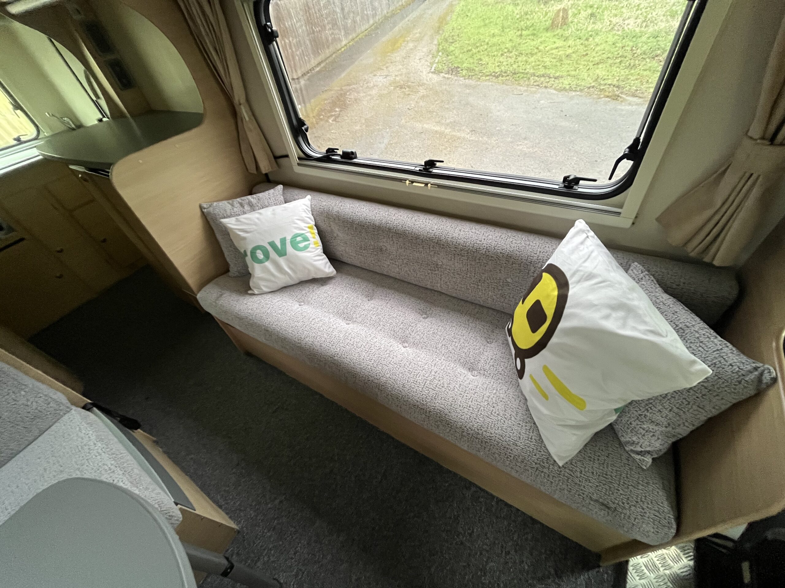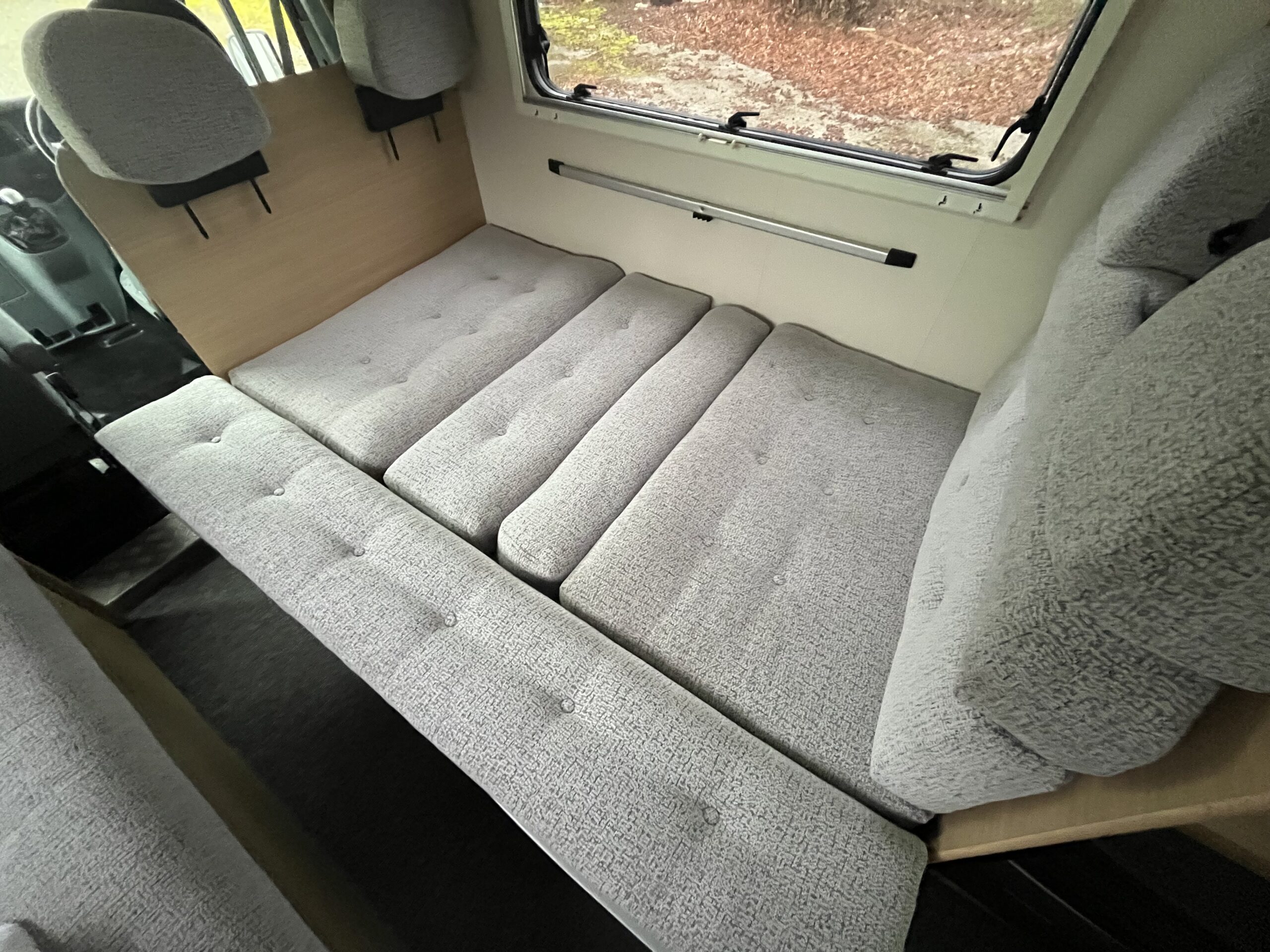The Roller Team 500 can be used as a 5 berth when you take advantage of the 6 foot side bench and comes with 6 travelling belts making it perfect for an adventurous family in their travelling adventures with this particular model having its upholstery professional redone in lovely bright greys and matching carpets making it look modern, warm and inviting inside.