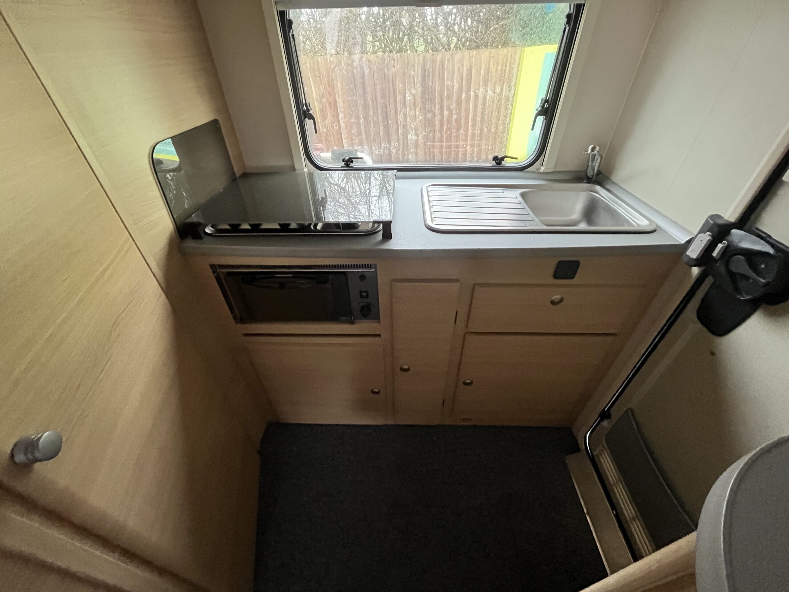 Rove! Motorhomes Mansfield are delighted to present to the market the Rollerteam Auto-roller 500. It’s built on the ever-reliable Ford Transit base with a 2.2 litre diesel engine with cruise control, on a 5 speed Manual gearbox. With its length at 6.32 metres and its width at 2.3 metres making it easy to park and drive with a weight of only 3500kg, which means this can be driven on a regular car license.