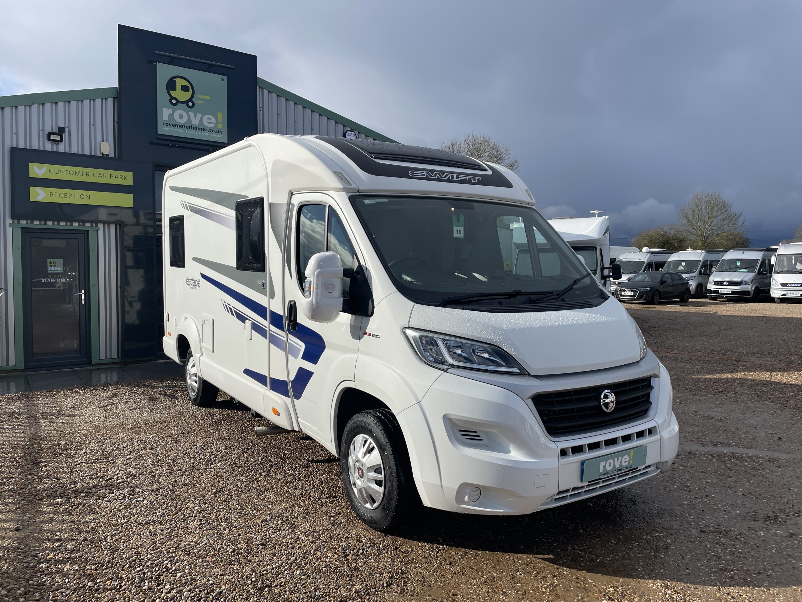 In summary, the Swift Escape Compact C404 2019 is a superb choice for couples seeking the luxury of an front and rear lounge layout within a more manageable and easy-to-drive motorhome. With its clever use of space, practical washroom design and 3,300kg weight category, it offers comfort, flexibility and accessibility in equal measure, another fantastic example of quality touring available from Rove Motorhomes.