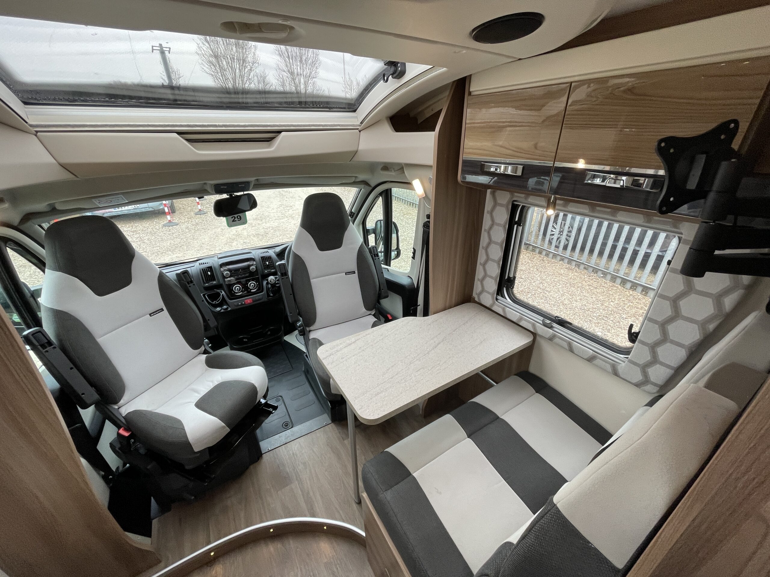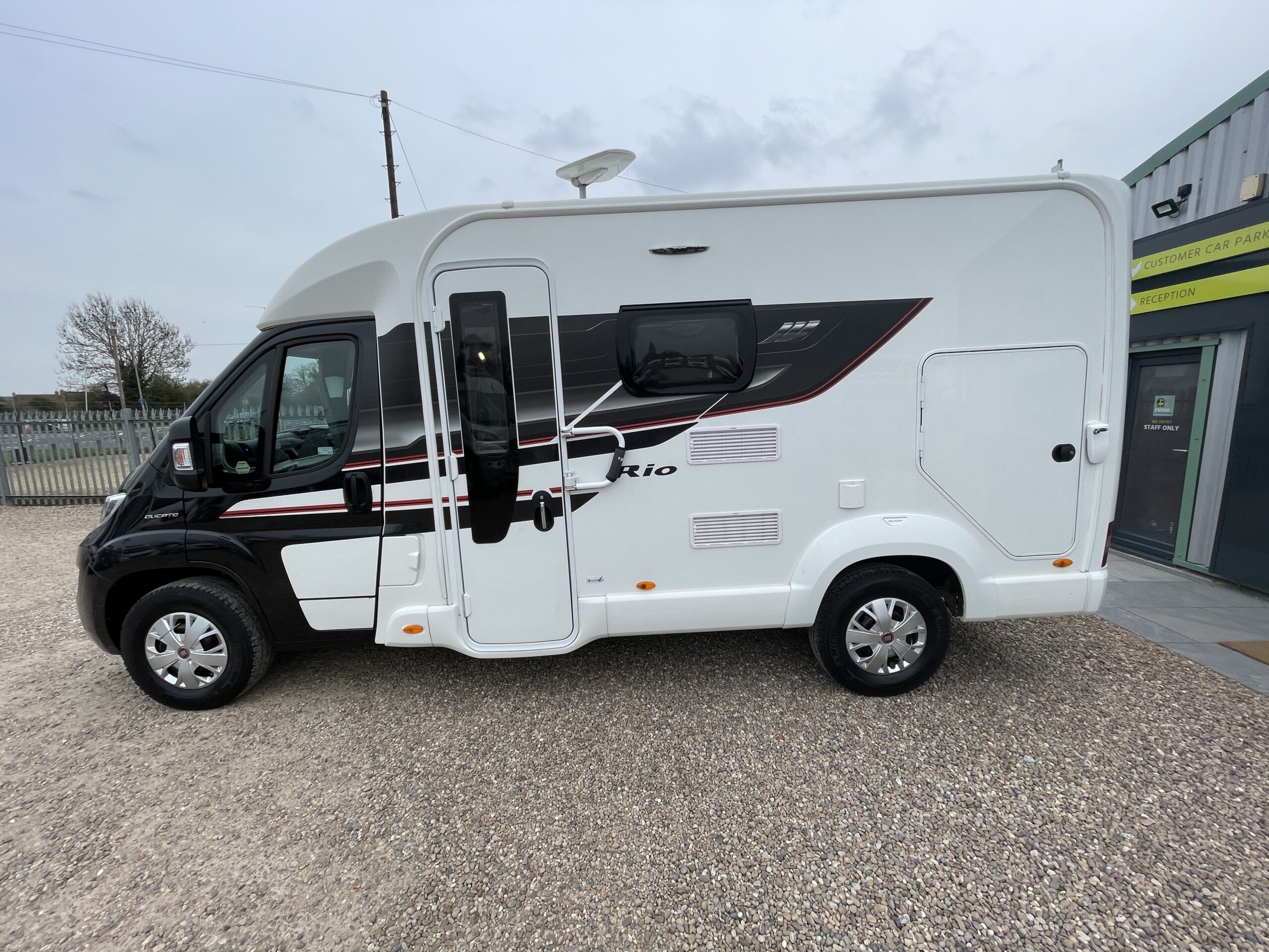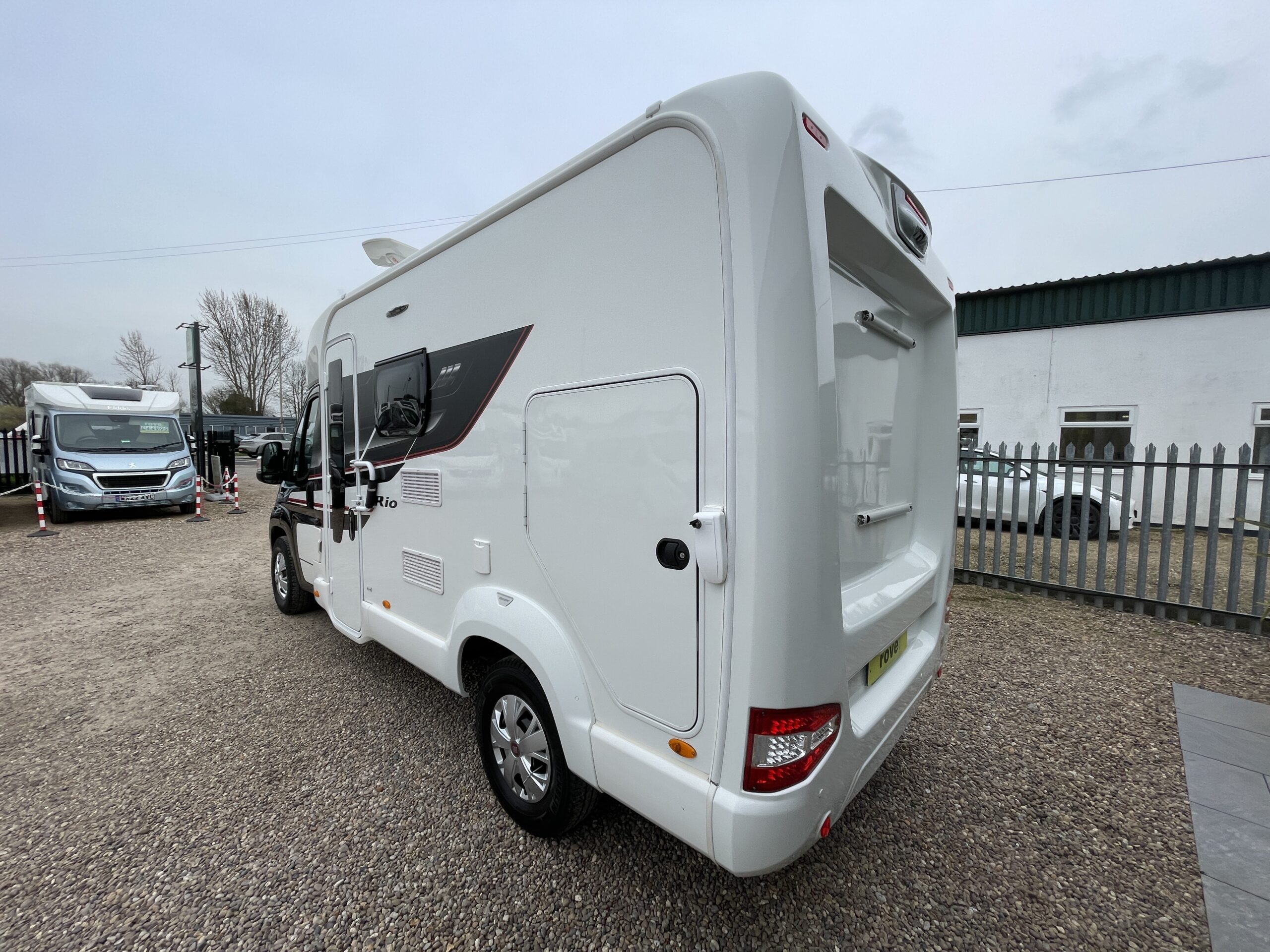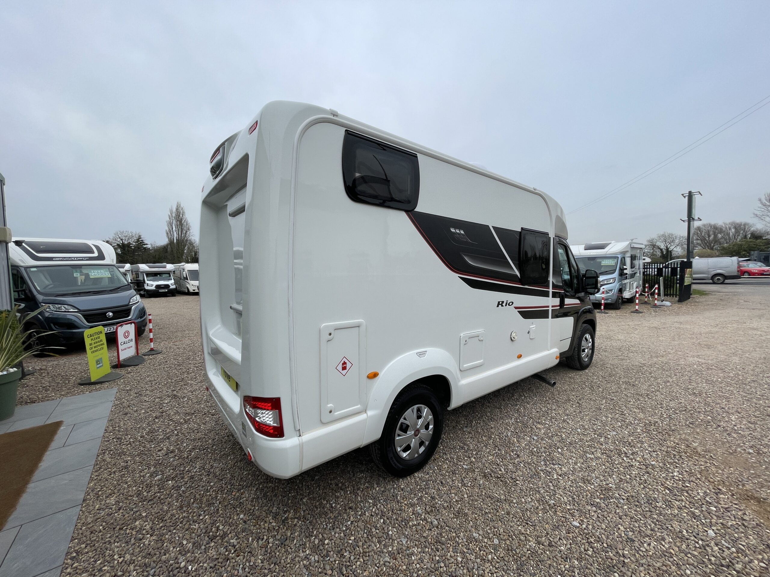 Rove motorhomes Gunthorpe are excited to off this Swift Rio 325. The 325 is a compact lowline coach built motorhome ready for a big adventure! It is compact enough for city streets yet spacious enough for real touring comfort; true all-rounder. It is based on the Fiat Ducato chassis with a 2287cc diesel engine and manual transmission. The cabin benefits from air conditioning, Bluetooth, swivel seats and cabin blinds.