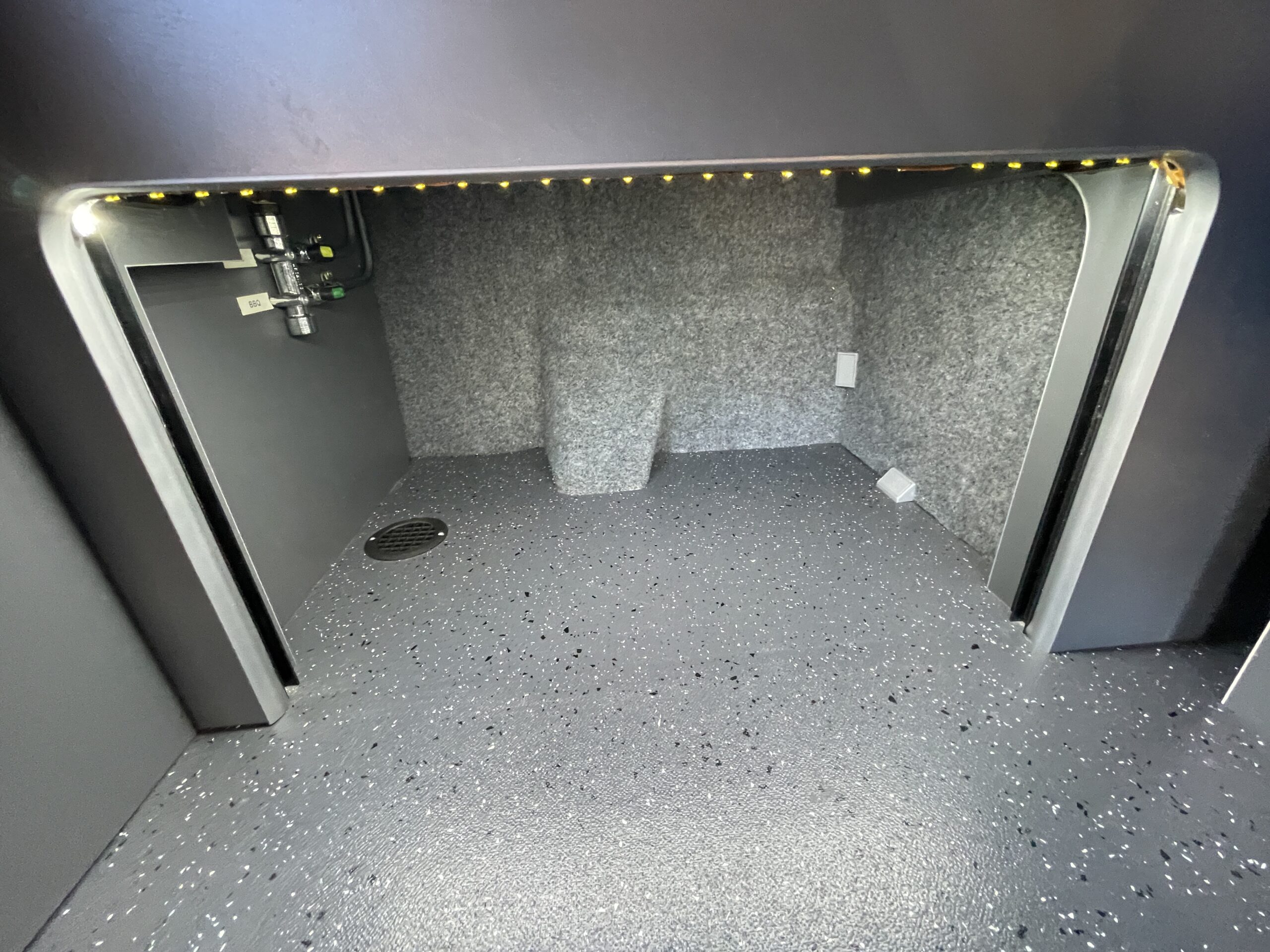 At first glance, this campervan exudes the signature Volkswagen charm, with a modern yet retro-inspired design. The vehicle boasts sleek, rounded edges, a high roof, and an expansive windshield that provides excellent visibility. The paint palette offers earthy, rugged tones with a flashy white bi-tone roof and grill. The campervan also features aesthetic 20” diamond cut alloys that look fantastic.