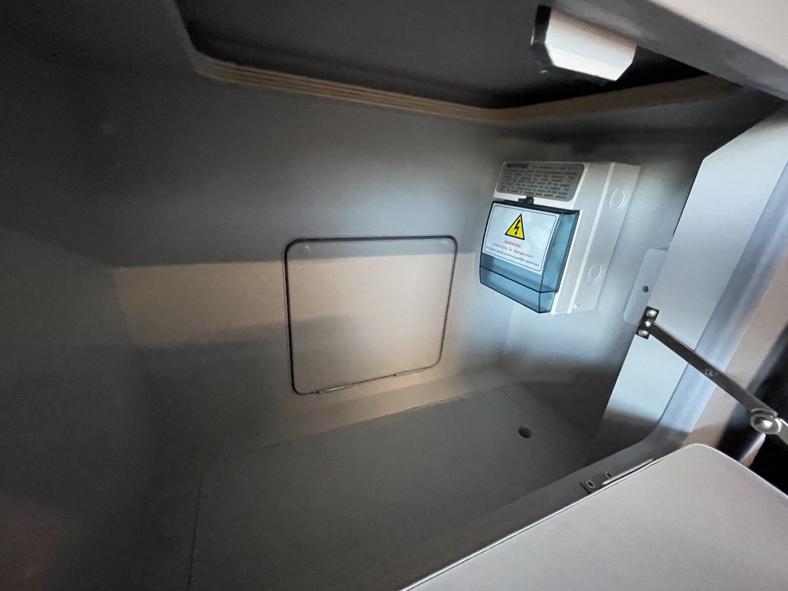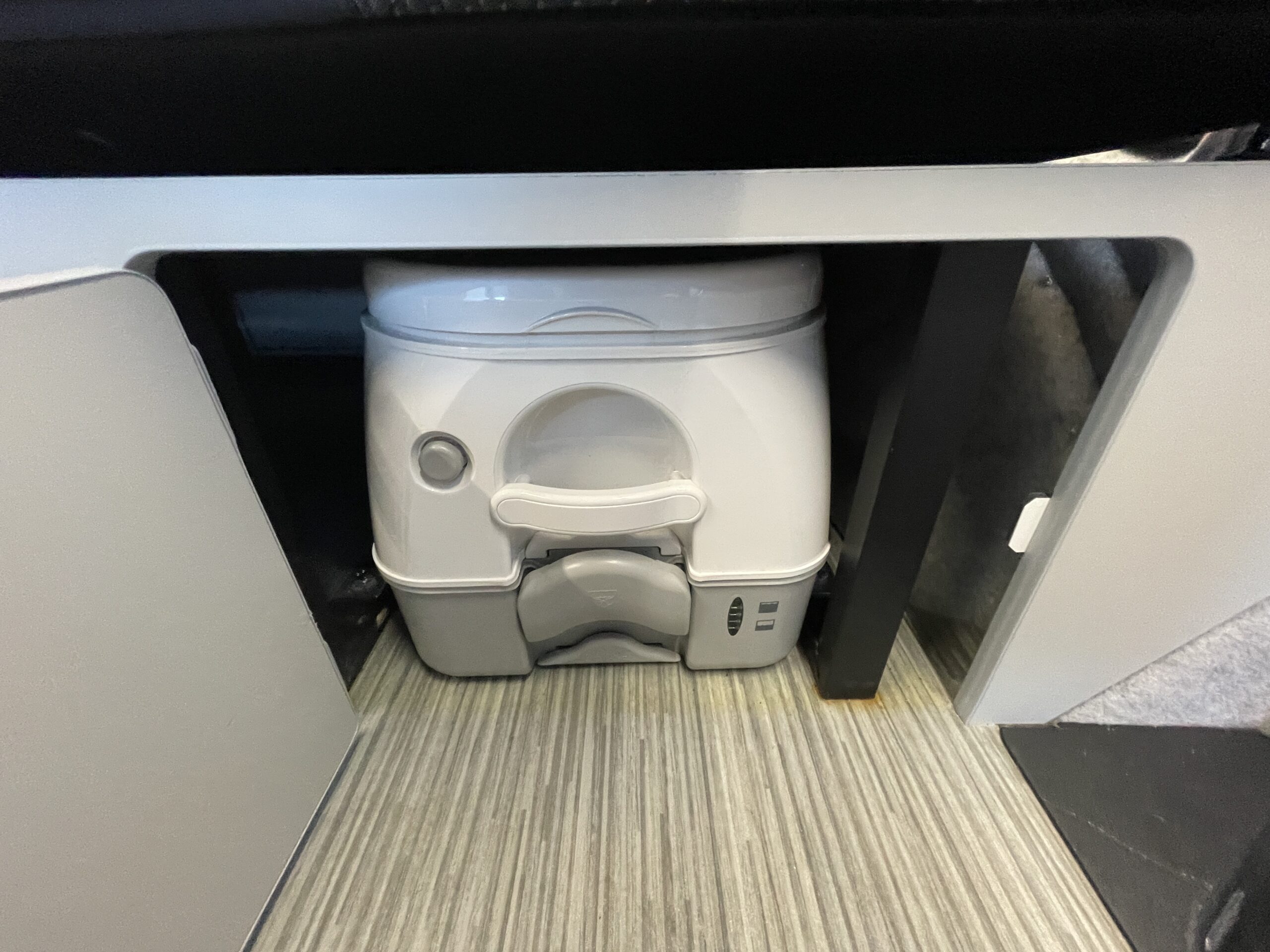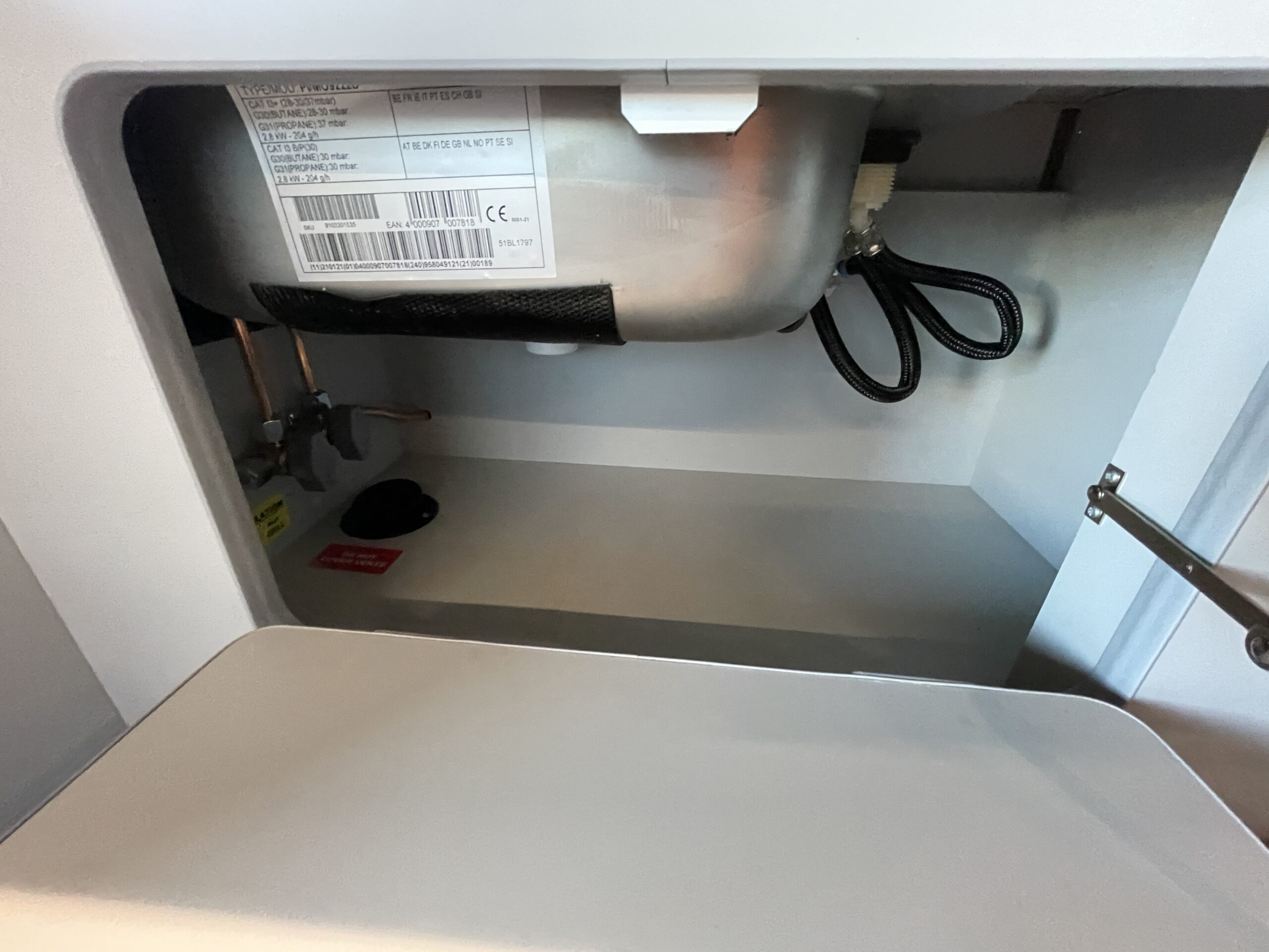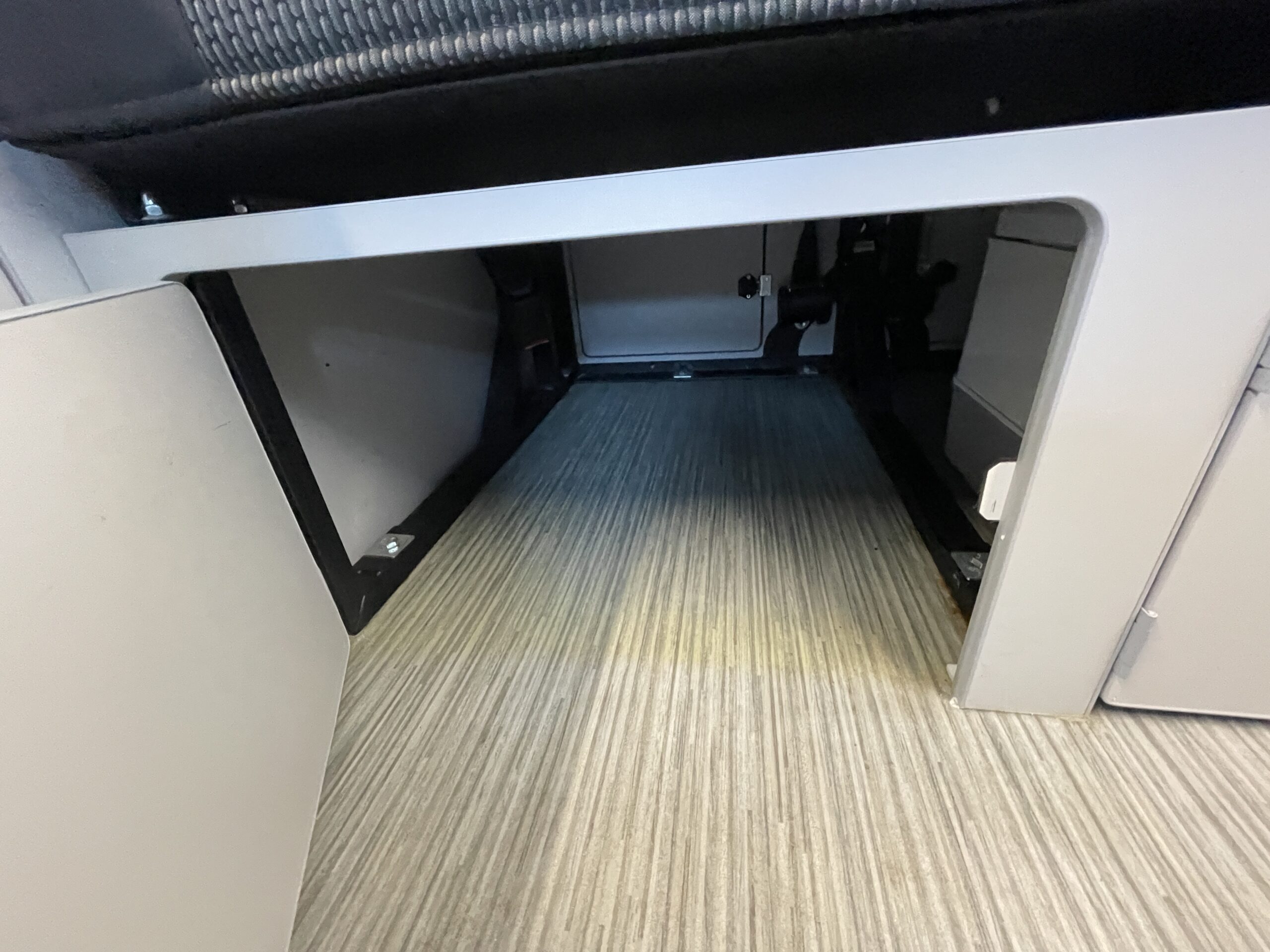 Moving forward along the side of the vehicle, the compact yet highly functional kitchen unit offers everything required for life on the road. Featuring a 2 ring gas hob, sink with hot & cold water supply, grill, fridge and practical cupboard storage, the kitchen allows you to prepare meals and drinks wherever your travels take you. The layout is thoughtfully designed to maximise usable space while maintaining a clean and modern finish.